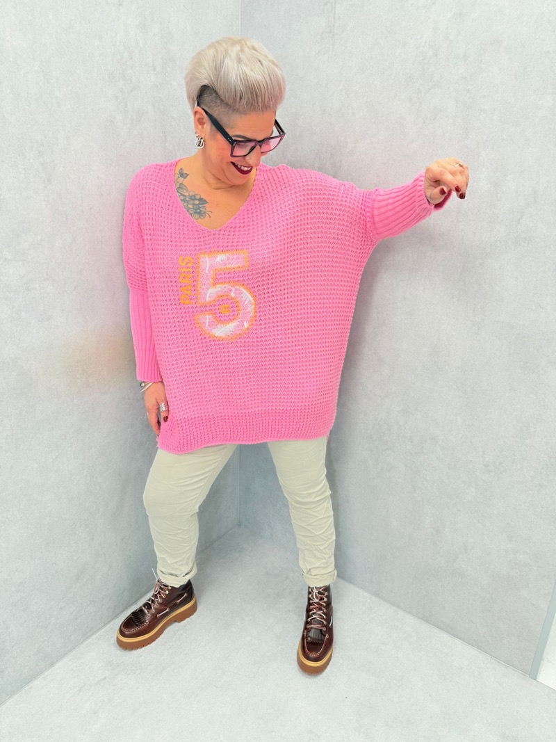 Découvrez notre pull oversize grande taille « Paris 5 », une pièce iconique pensée pour sublimer toutes les silhouettes du 42 au 52. Conçu dans une maille douce et moelleuse, il offre un confort absolu tout en apportant une touche tendance et féminine. Avec son design ample, son col V flatteur et son motif brodé rose façon bouclette, ce pull devient rapidement un incontournable du dressing quotidien.