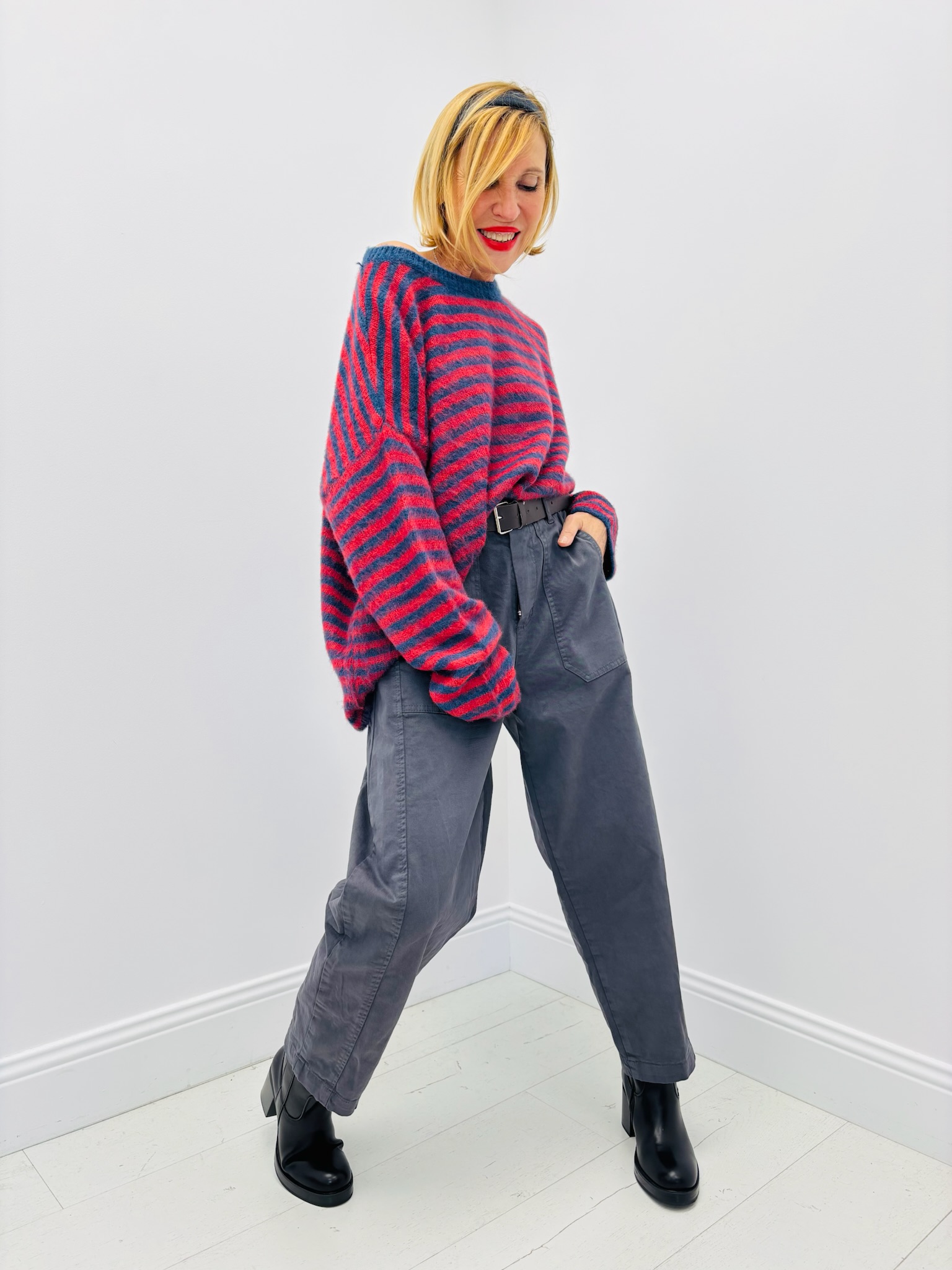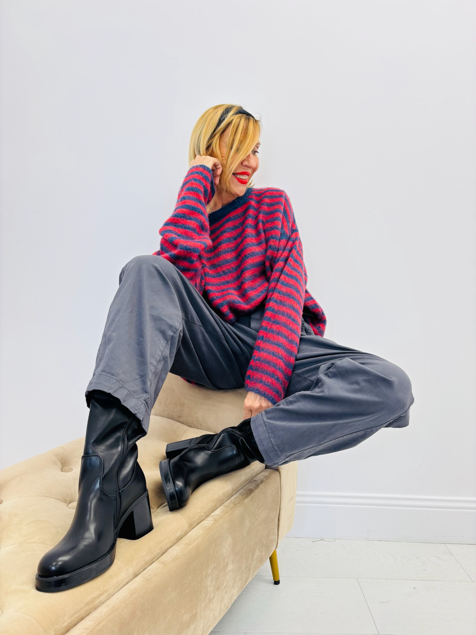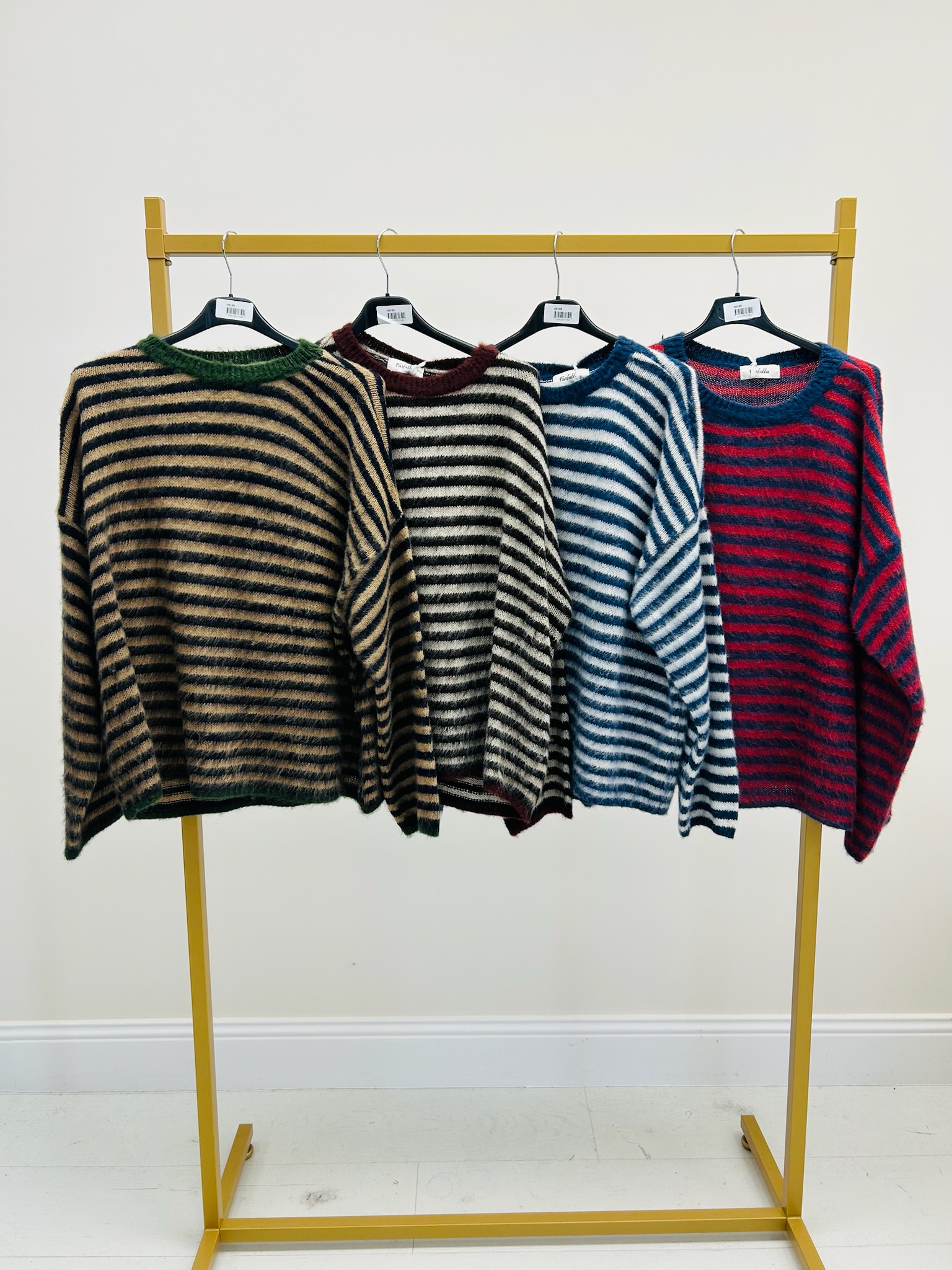 Un indispensable du vestiaire d’hiver revisité avec une touche italienne ! Ce pull rayé séduit par sa maille duveteuse, son col rond légèrement dégagé et ses teintes contrastées qui dynamisent la silhouette. Sa texture moelleuse mélange viscose et laine pour un confort optimal, tout en gardant une allure légère et moderne.