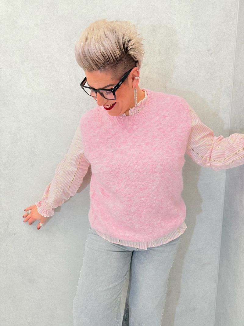 Pull sans manches en maille douce rose chiné – Grande Taille – Confort moderne et allure tendance