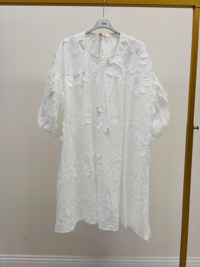 Découvrez cette élégante robe en broderie anglaise qui offre une touche de sophistication à votre garde-robe. Avec une taille oversize, elle garantit confort et style.
