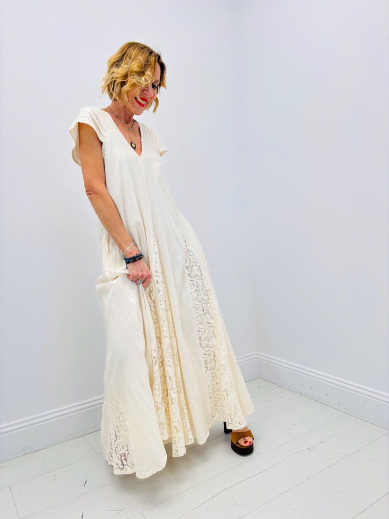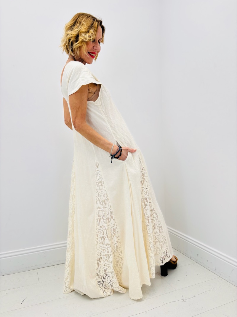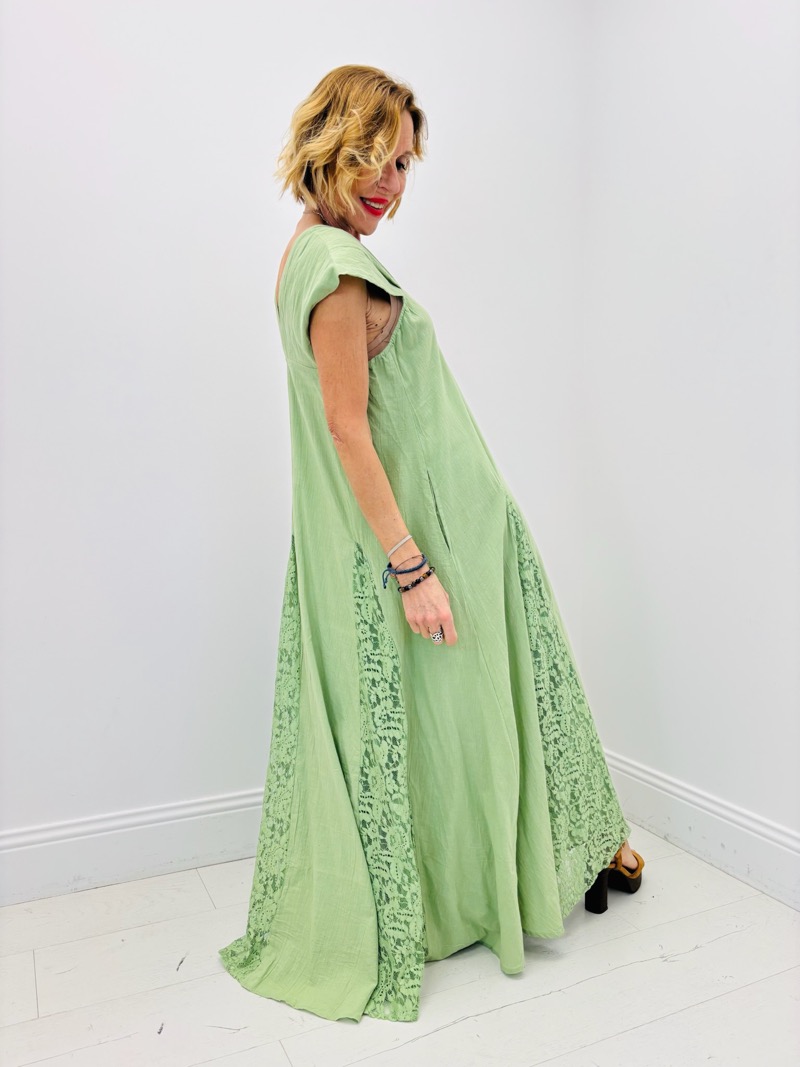 Découvrez l’élégance de cette robe agrémentée de délicats détails en dentelle, parfaite pour sublimer votre garde-robe estivale.