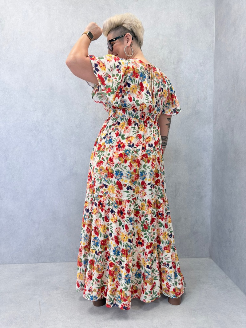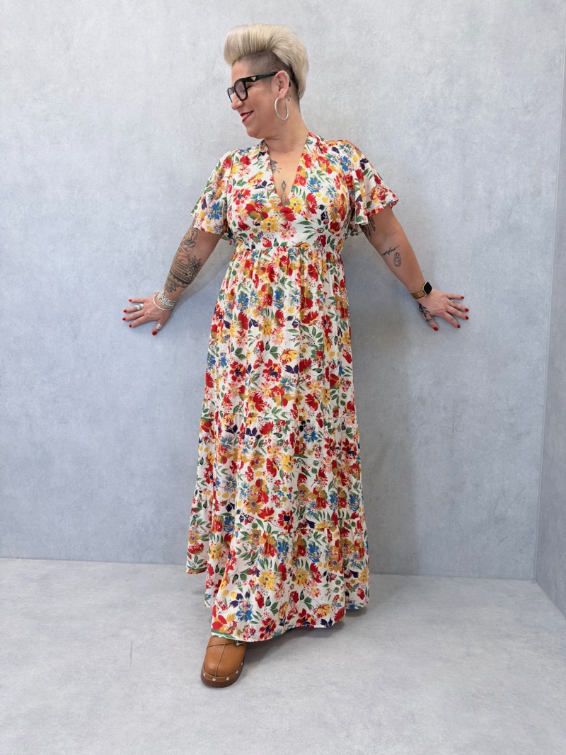 Son design élégant et ses motifs floraux multicolores font de cette robe un choix incontournable pour votre garde-robe estivale.