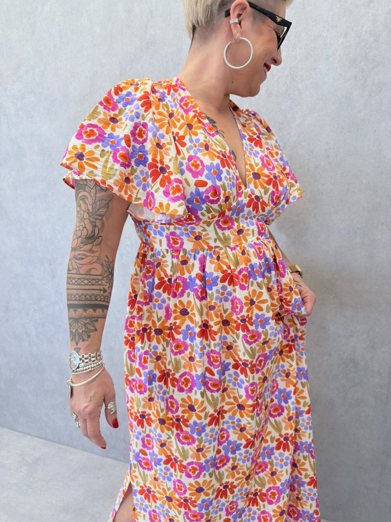 Découvrez notre robe imprimée florale, un vêtement vibrant et élégant, idéal pour les beaux jours.
