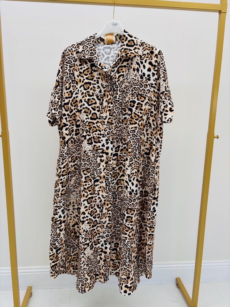 Cette robe léopard est idéale pour un look chic et audacieux. Elle se marie parfaitement avec des accessoires discrets pour un style quotidien raffiné ou avec des pièces plus extravagantes pour une soirée tendance.