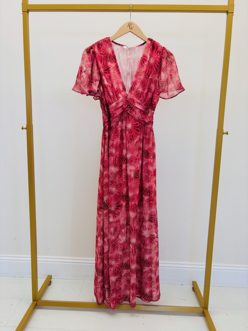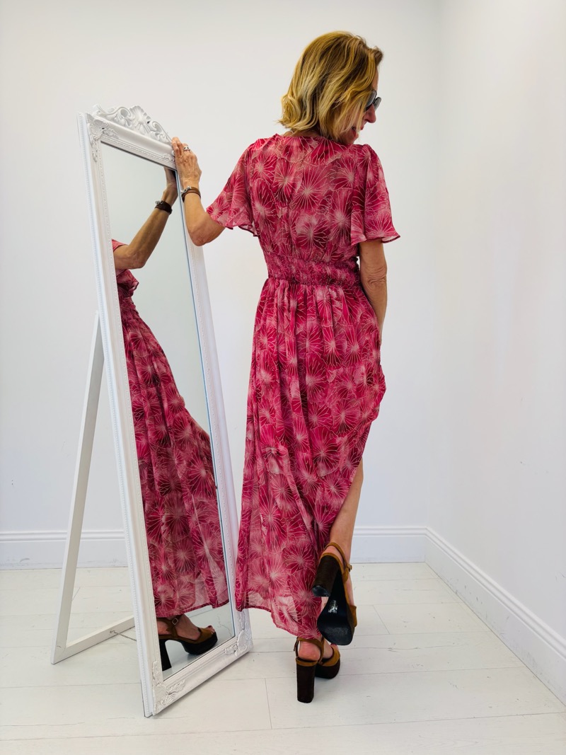 - Robe longue à imprimé floral fuchsia