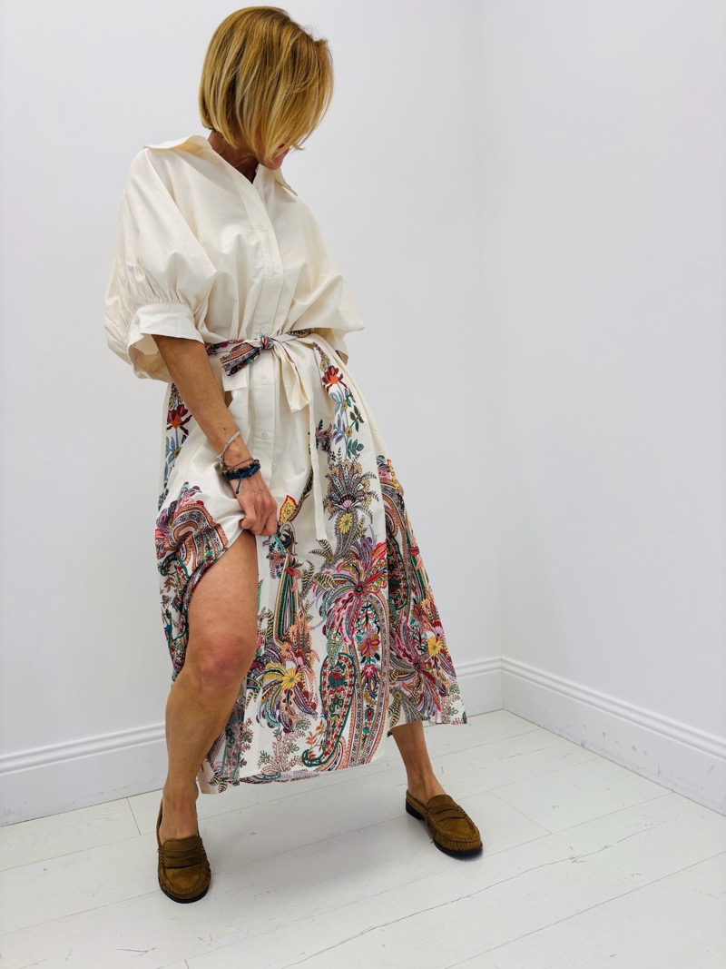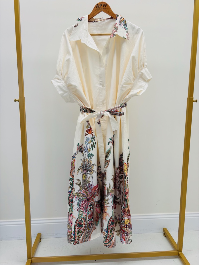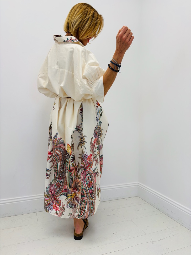 Fabriquée en coton doux, elle est idéale pour toutes les saisons grâce à son tissu respirant et son design gracieux. La coupe ample offre une liberté de mouvement incomparable, tandis que l’imprimé apporte une touche de couleur et de gaieté à votre look.