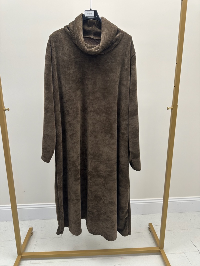 Robe longue grande taille col montant – Élégance sobre et confort cocooning