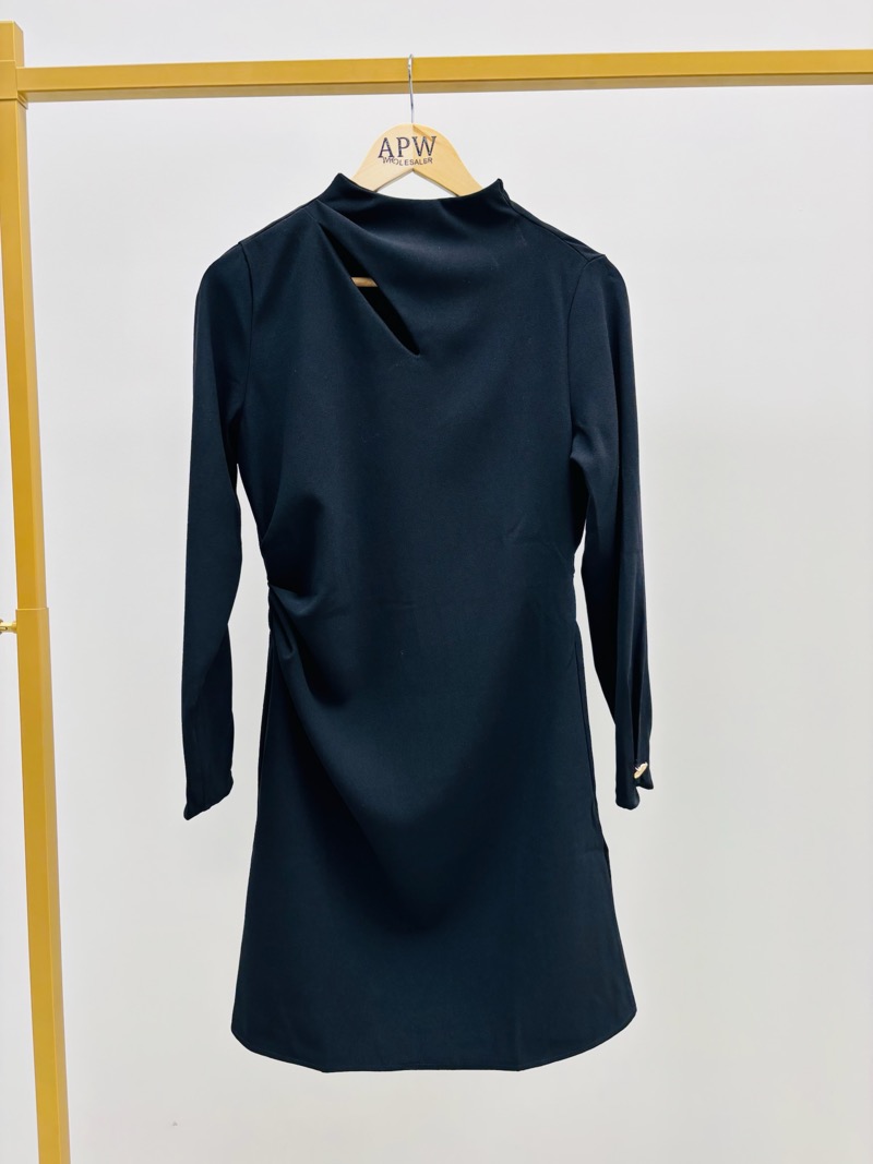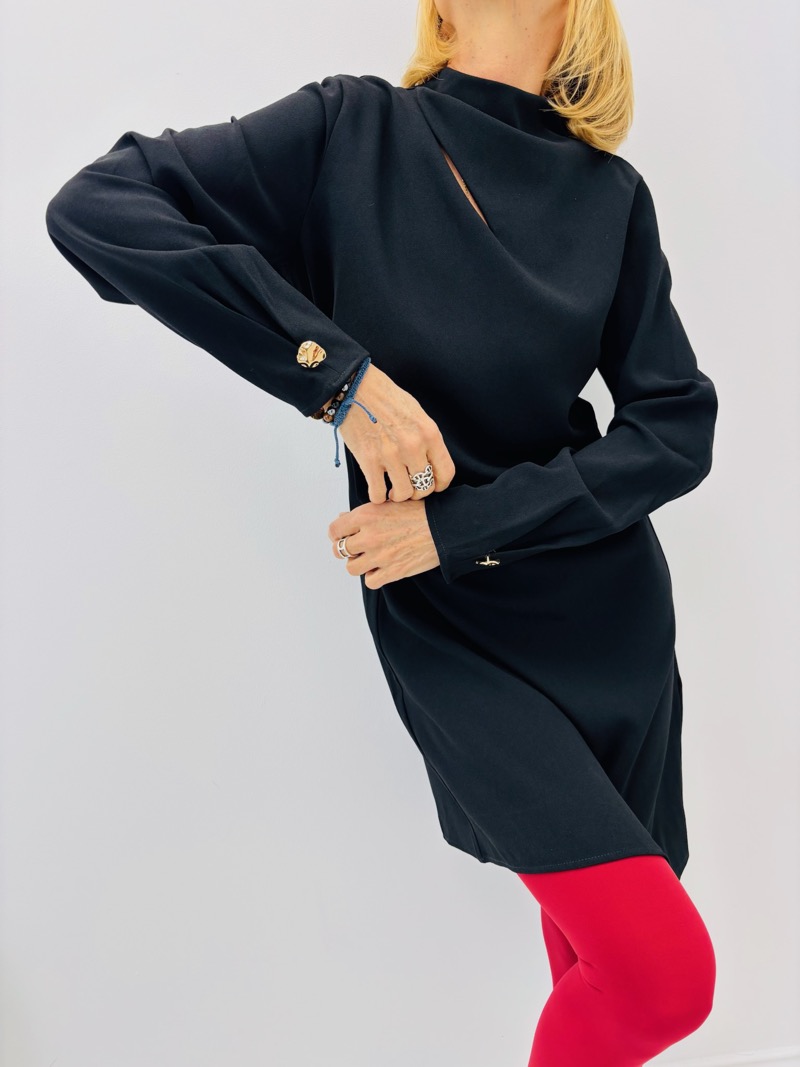Portée en noir, la robe MALOLA montre toute sa puissance stylistique : un look sobre mais irrésistiblement moderne.