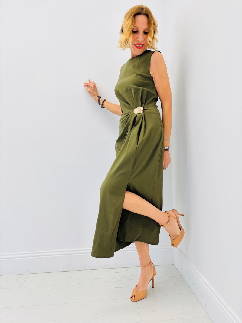 Robe Midi Drapée Boucle Bijou