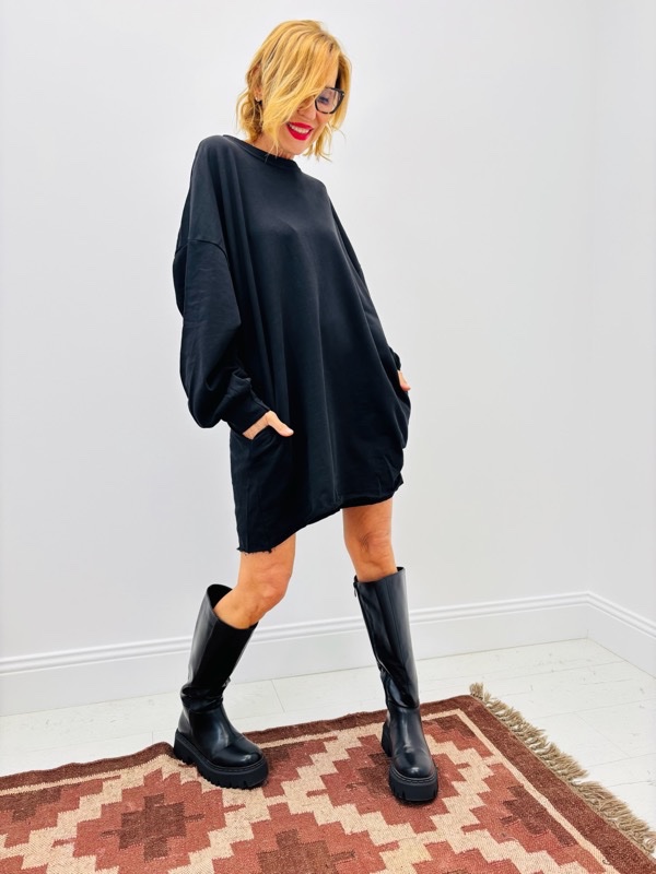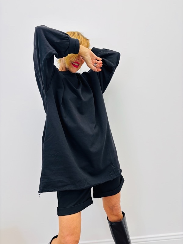 Longueur mi-cuisses pouvant se porter en tunique ou mini-robe
