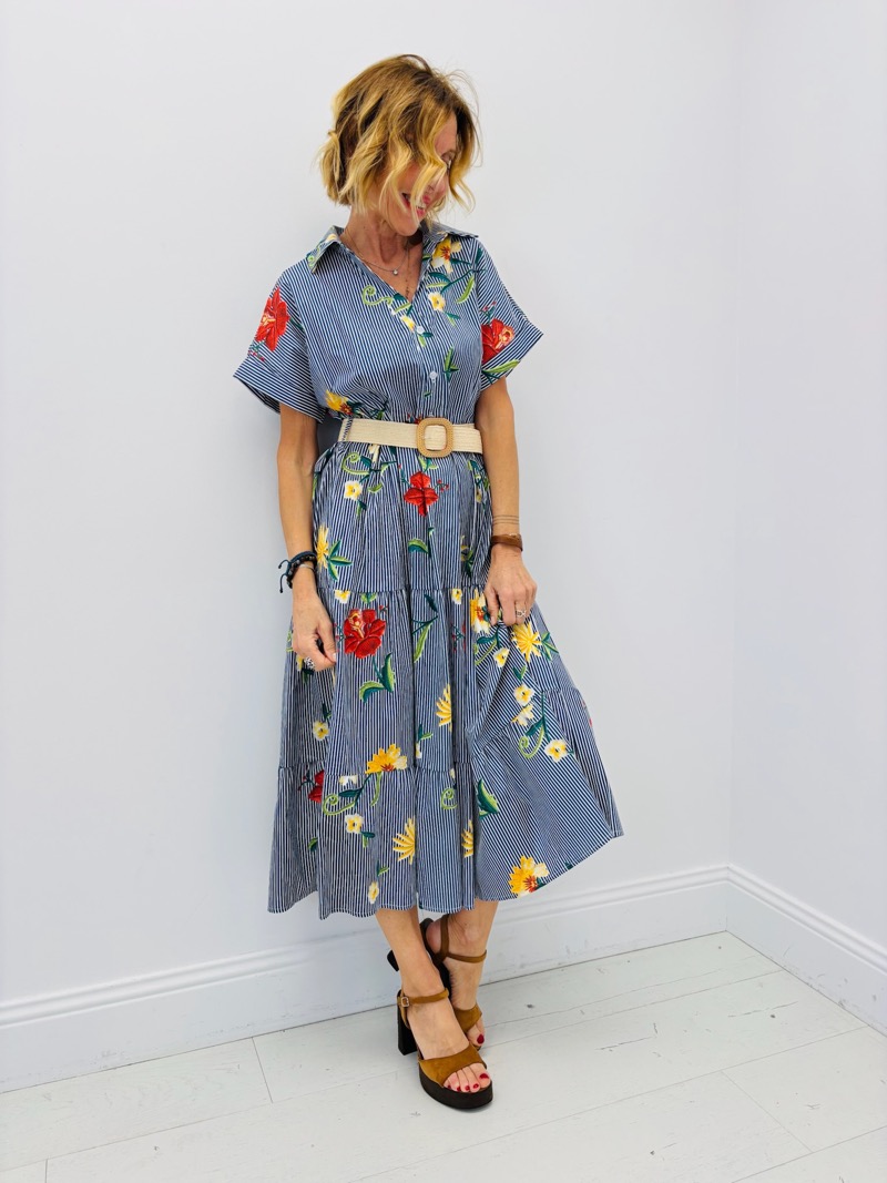 Découvrez la combinaison parfaite de couleur et de confort avec cette robe rayée à motifs fleuris. Son style bohème saura séduire les adeptes de tenues à la fois chic et décontractées.