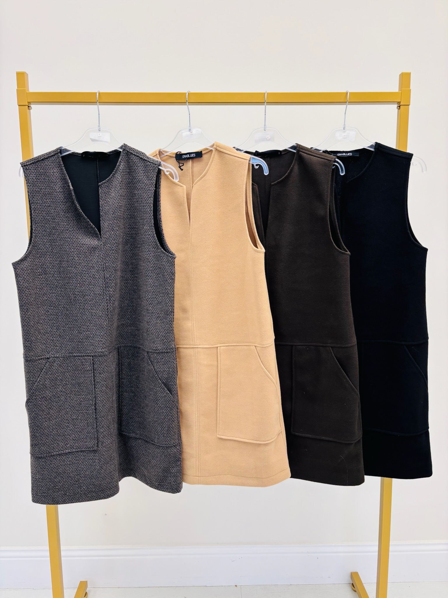 Portée ici avec des bottes hautes, elle incarne le style minimaliste et féminin cher à la marque EMA BLUES. Idéale aussi sur un col roulé pour un look d’hiver raffiné.