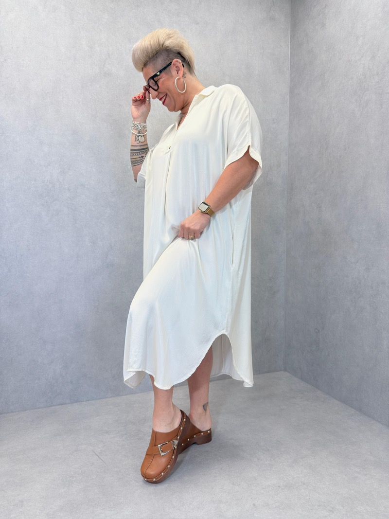 Découvrez la robe satinée qui sublime votre silhouette avec son tissu fluide et léger. Une pièce idéale pour vos journées d’été ou vos soirées élégantes. Son design simple et raffiné s’ajuste parfaitement à toutes les occasions.