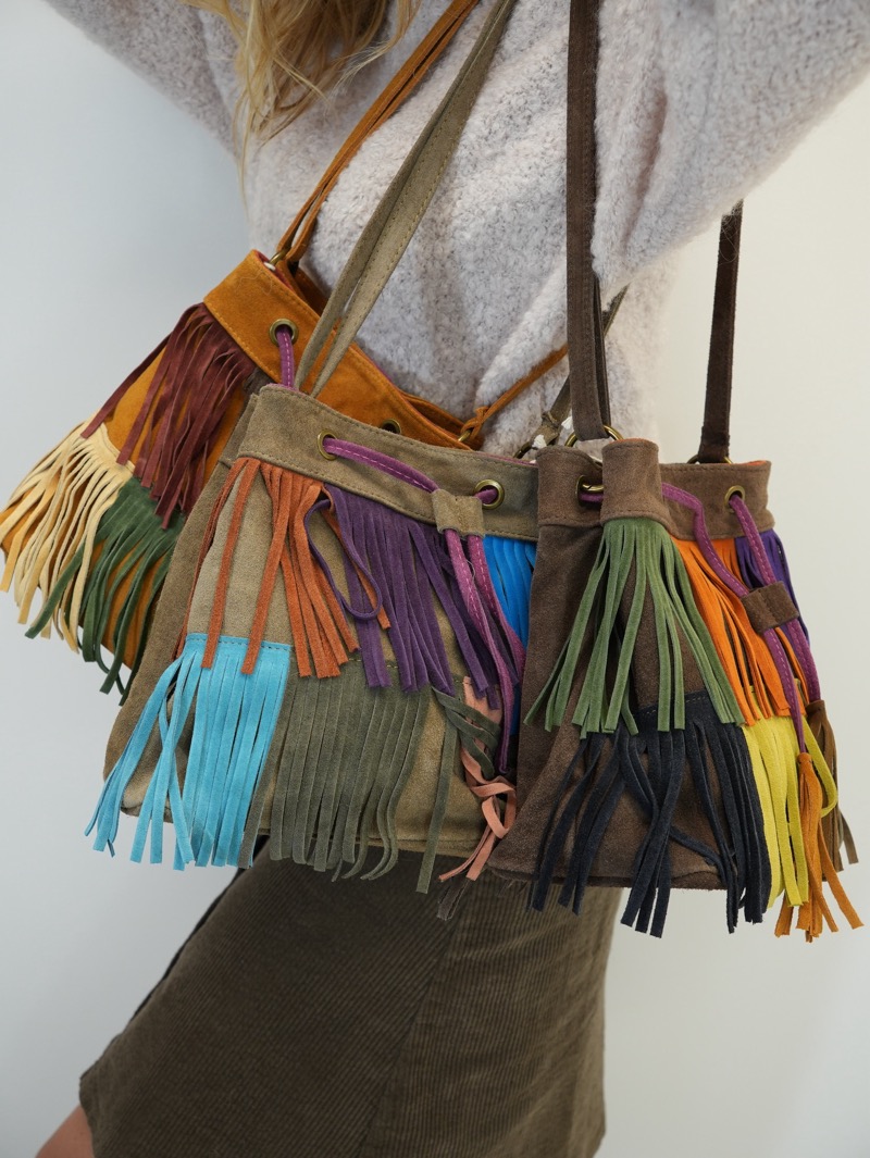 Un sac bohème et authentique en cuir véritable, sublimé par ses franges colorées qui apportent dynamisme et originalité à vos looks. Son format pratique permet de transporter vos essentiels tout en affirmant un style unique.