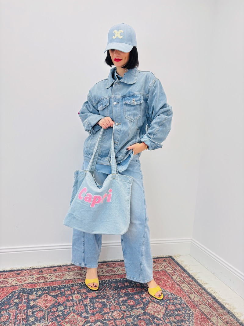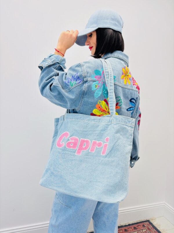 Ce sac cabas en denim est l’accessoire parfait pour allier style, praticité et modernité. Réalisé dans une toile denim souple et résistante, il se distingue par son message brodé à l’avant qui apporte une touche tendance et décontractée. Son format généreux permet de transporter facilement tous les essentiels du quotidien, tout en restant léger et agréable à porter.