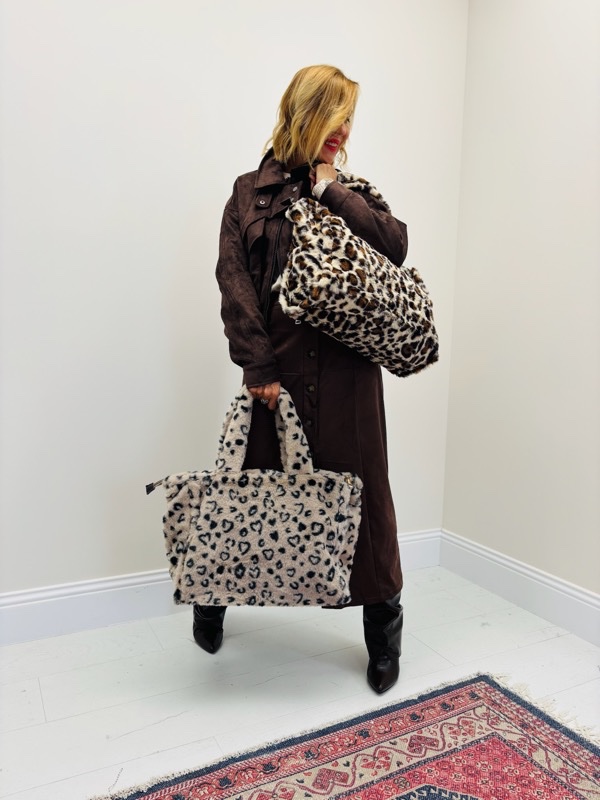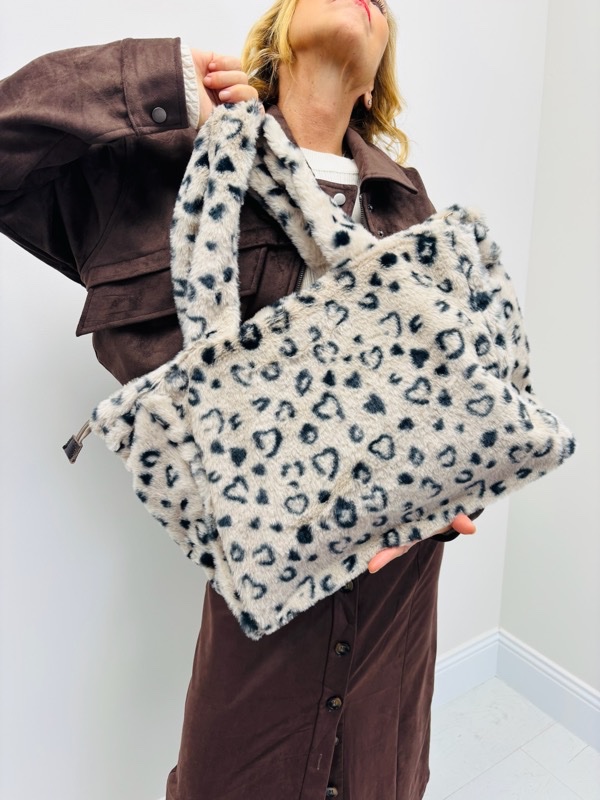 Un accessoire doux, tendance et ultra confortable. Ce grand sac cabas en fausse fourrure séduit par son volume généreux et ses imprimés léopard originaux, parfaits pour dynamiser vos looks d’hiver.