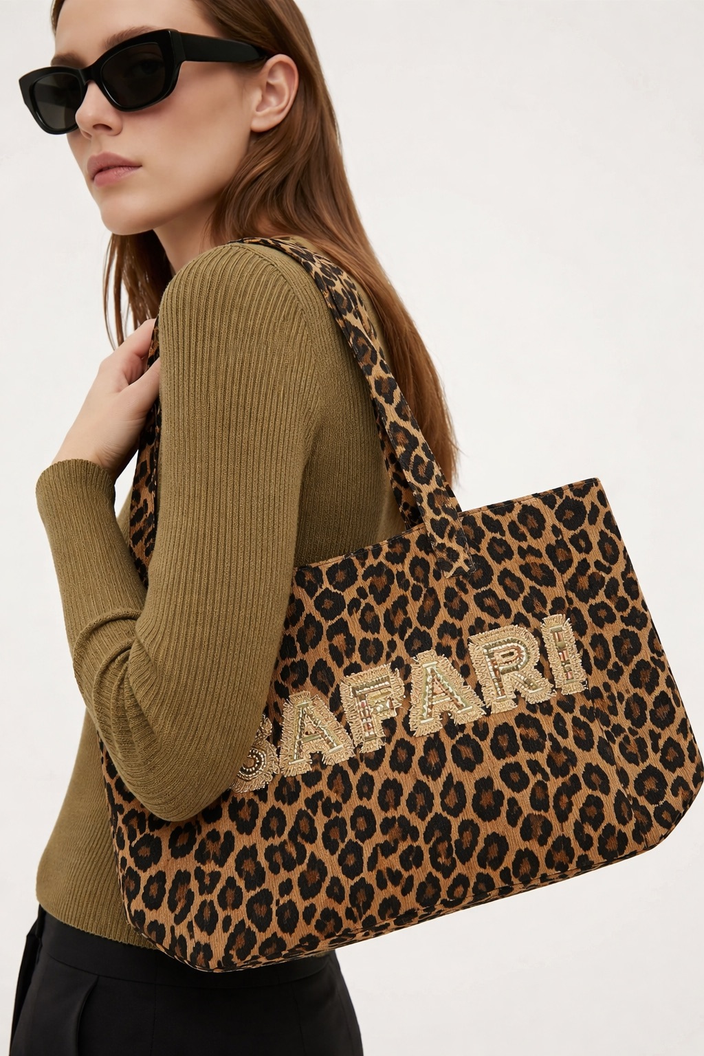 Ce sac cabas léopard s’impose comme une pièce forte et ultra-désirable, mêlant caractère sauvage et esprit chic décontracté. Confectionné en velours côtelé au toucher doux, il offre une texture chaleureuse et un rendu visuel premium, parfaitement dans l’air du temps. Son motif léopard iconique est rehaussé par une broderie “Safari” travaillée, apportant une signature mode affirmée et un style immédiatement reconnaissable.