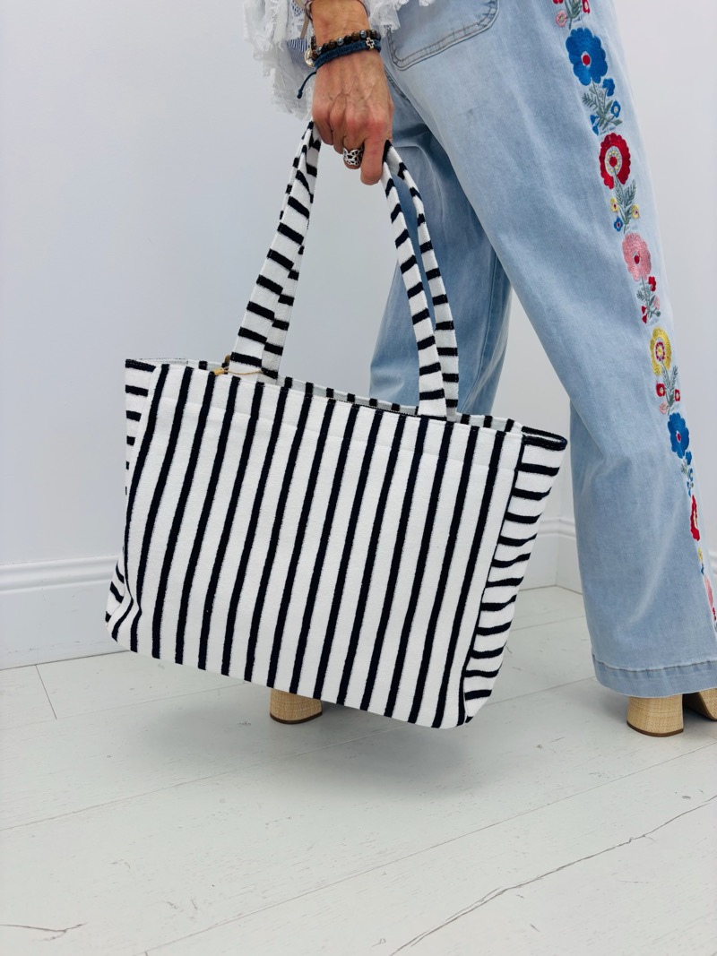 Spacieux et pratique, ce cabas est pensé pour accompagner toutes les journées estivales, que ce soit à la plage, en ville ou en week-end. Sa matière éponge apporte un effet tendance et confortable, tout en donnant au sac un style original et reconnaissable. Les rayures contrastées apportent une touche dynamique et mode qui attire immédiatement le regard.