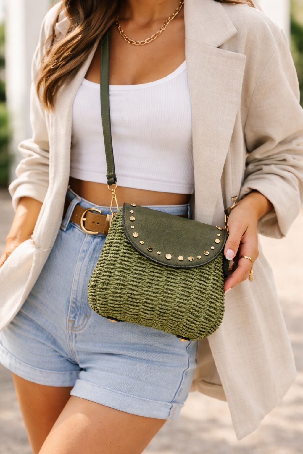 Porté avec un short, un jean ou une robe fluide, ce sac complète parfaitement une silhouette estivale. Il apporte une touche naturelle et tendance aux looks casual comme aux tenues plus féminines, idéal pour la ville, les vacances ou les sorties quotidiennes.