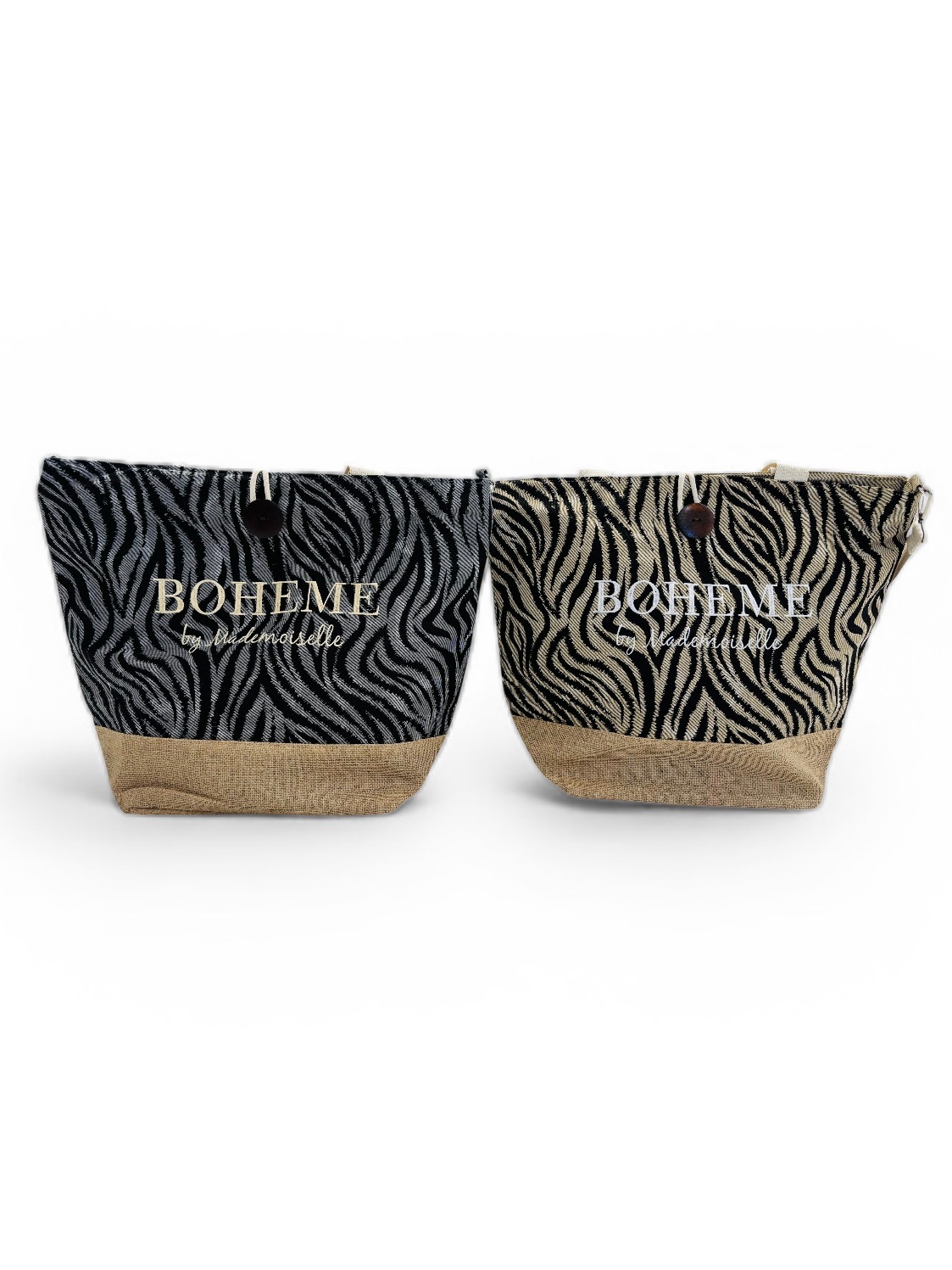 Ce sac à l’allure bohème moderne séduit par son imprimé zébré revisité et son contraste naturel ultra tendance. L’association du motif graphique et de la base effet toile apporte un équilibre parfait entre caractère affirmé et esprit authentique.