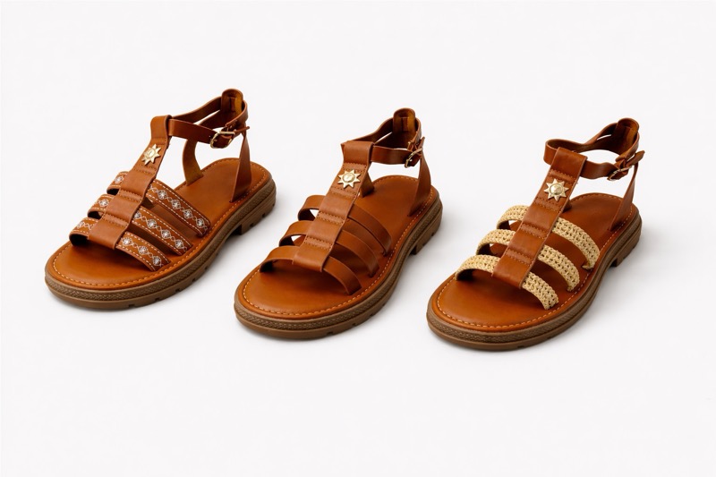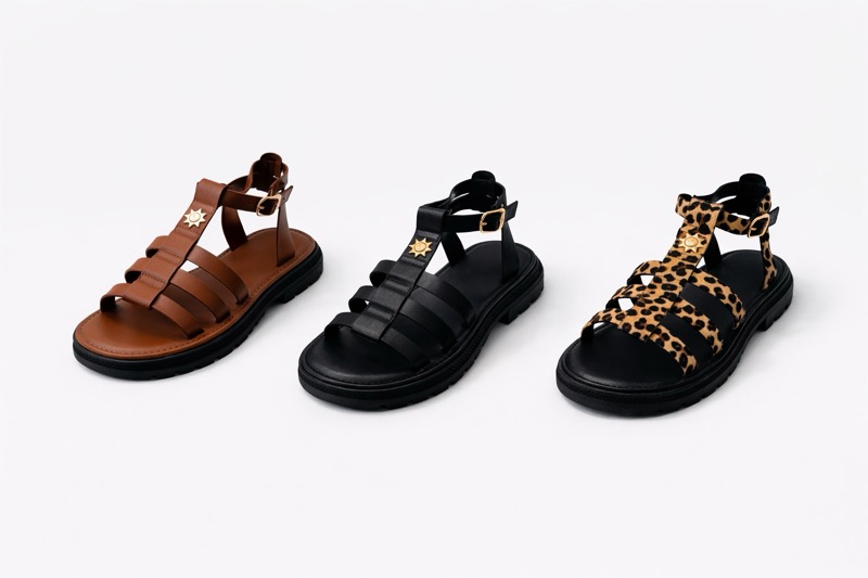 Ces sandales plates revisitent l’esprit gladiateur avec une touche contemporaine et féminine. Leur design structuré à brides multiples assure un excellent maintien du pied tout en conservant une silhouette légère et estivale.