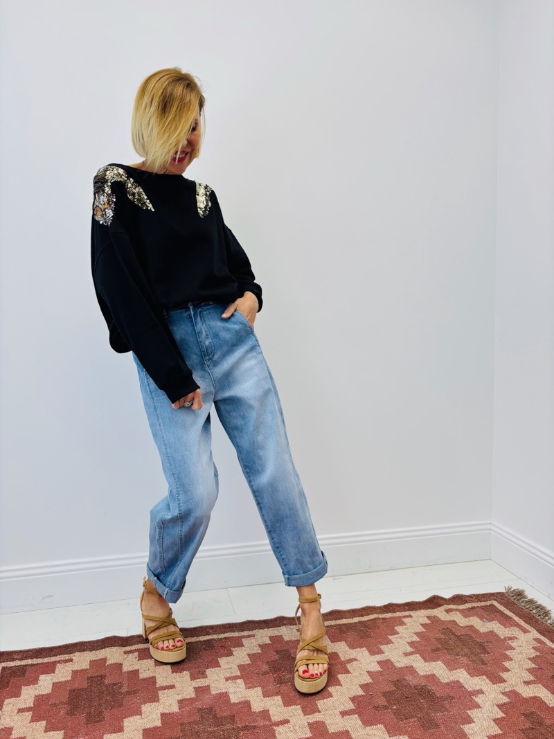 Associé à un jean taille haute, le sweat Seagle crée un look casual chic parfaitement équilibré. Les sequins aux épaules captent la lumière et permettent de porter ce modèle aussi bien en journée qu’en soirée.