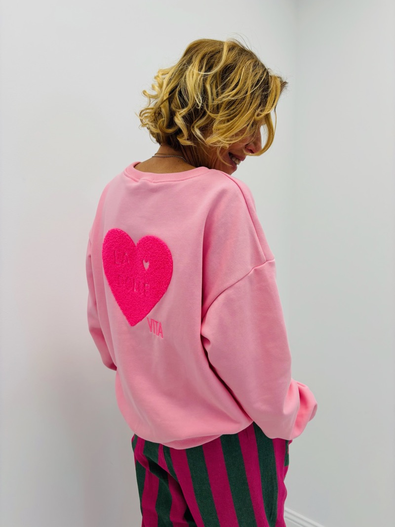 Sa coupe légèrement oversize offre un tombé décontracté et confortable, parfait pour un look casual tendance. Le design est sublimé par un grand cœur au dos qui crée un effet visuel fort et apporte une touche originale à la pièce.
