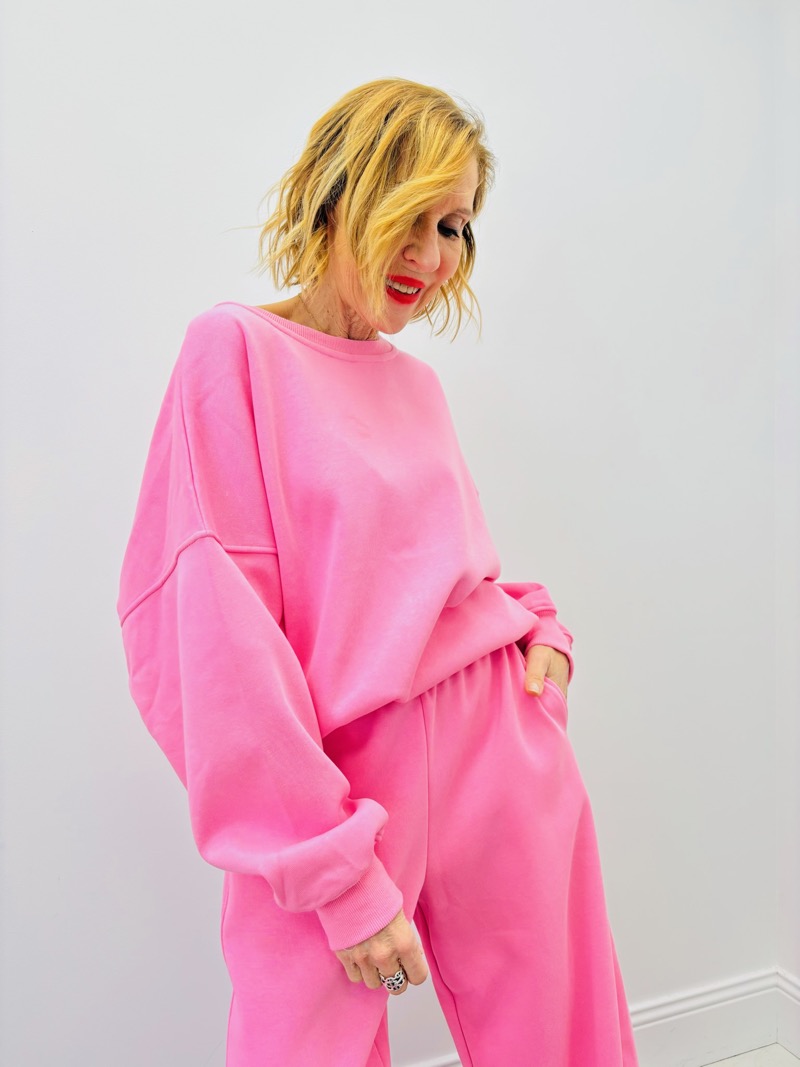À porter avec un pantalon jogg assorti, un jean, un pantalon large ou une jupe, ce sweat s’adapte aussi bien à un look détente qu’à une silhouette plus travaillée.