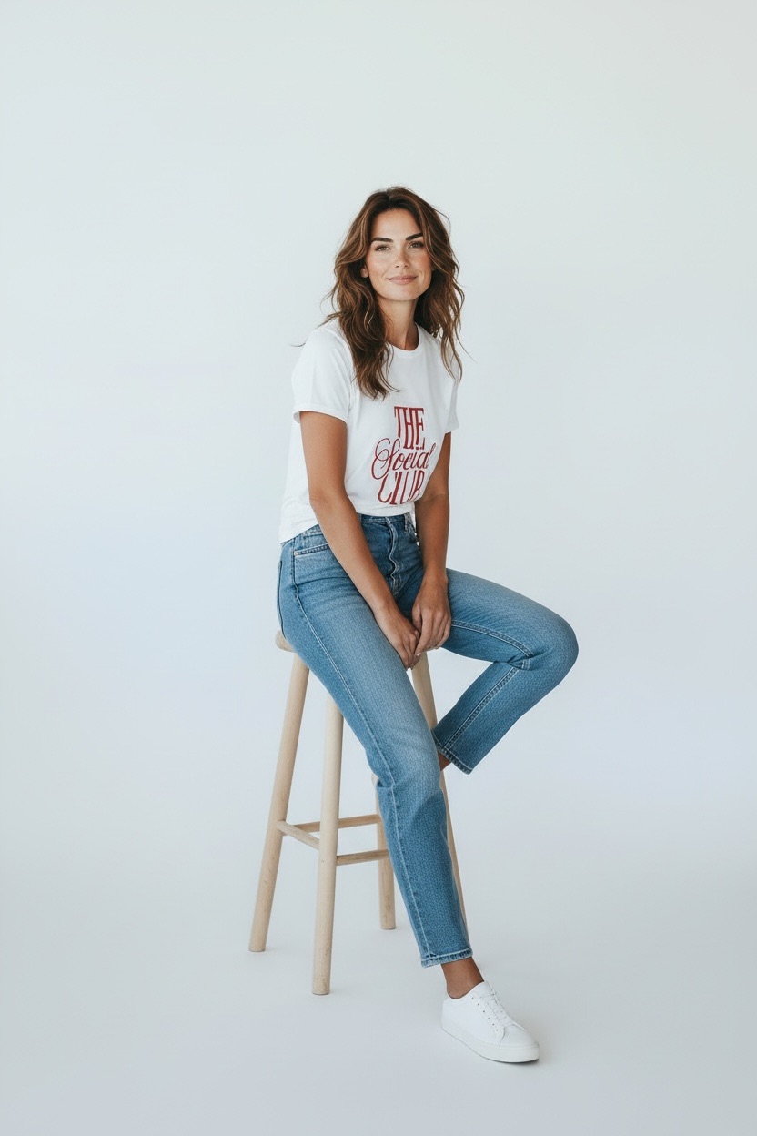 Ce t-shirt blanc à message s’impose comme une pièce forte et facile à vendre, idéale pour dynamiser une sélection casual chic. Son imprimé rouge “The Social Club”, à la typographie élégante mêlant lettres graphiques et écriture manuscrite, apporte une vraie identité visuelle tout en restant intemporel. Le contraste du blanc lumineux et du rouge intense attire immédiatement le regard en boutique comme en ligne.