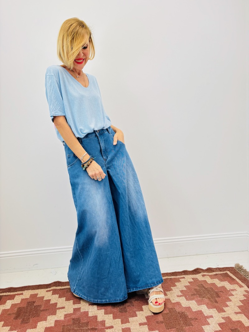Sa coupe oversize assure une silhouette décontractée, moderne et flatteuse. Le col V met subtilement en valeur le décolleté sans en faire trop, tandis que les manches courtes légèrement amples apportent aisance et style.