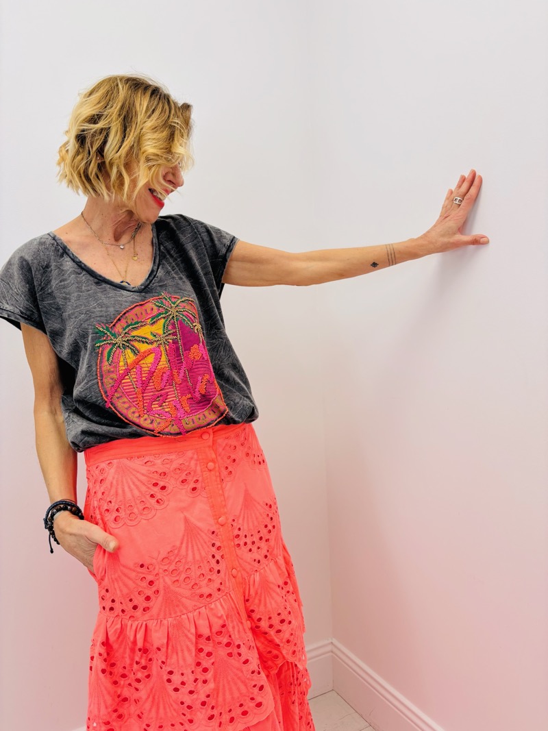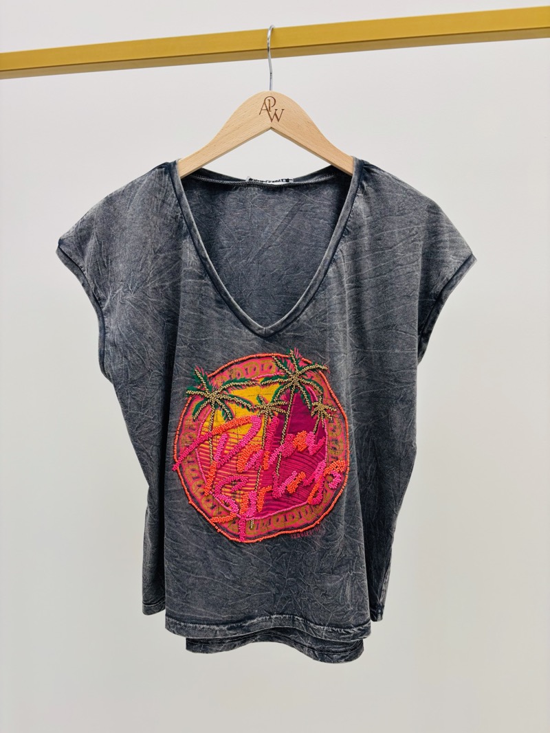 Découvrez ce t-shirt unique avec des détails perles colorés qui insufflent un esprit estival et décontracté. Parfait pour ajouter une touche de fun à votre tenue quotidienne.