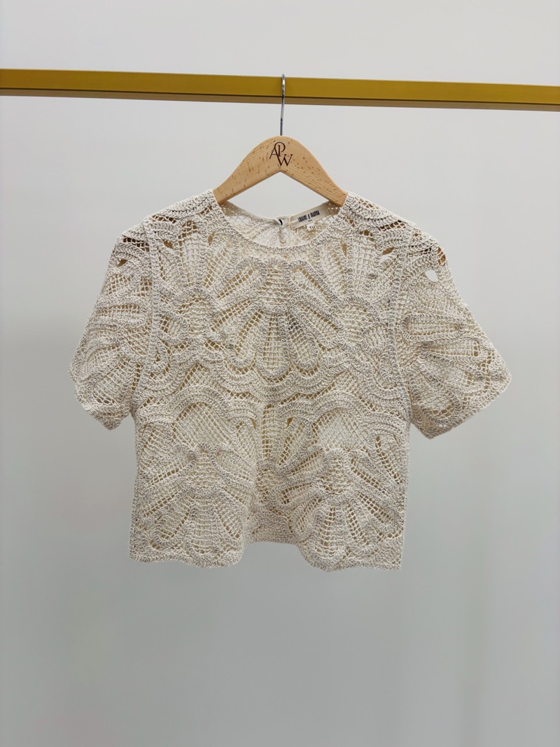 Avec son esprit artisanal et son design délicat, ce t-shirt crochet devient une pièce incontournable pour une collection printemps-été.