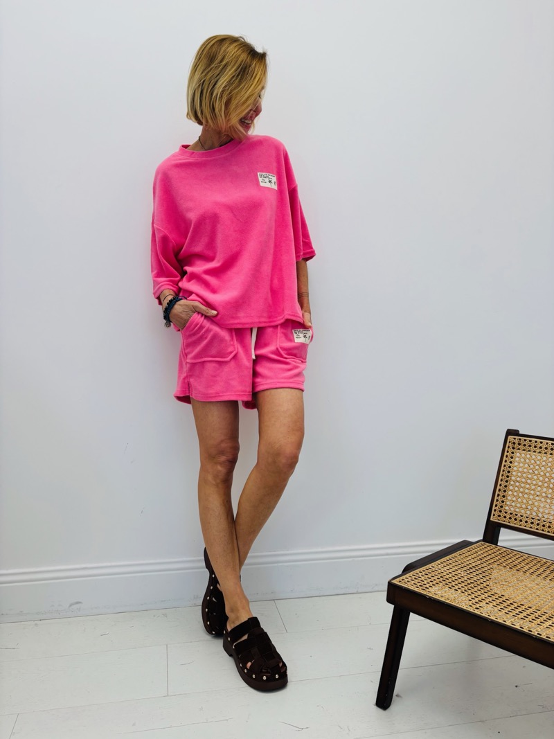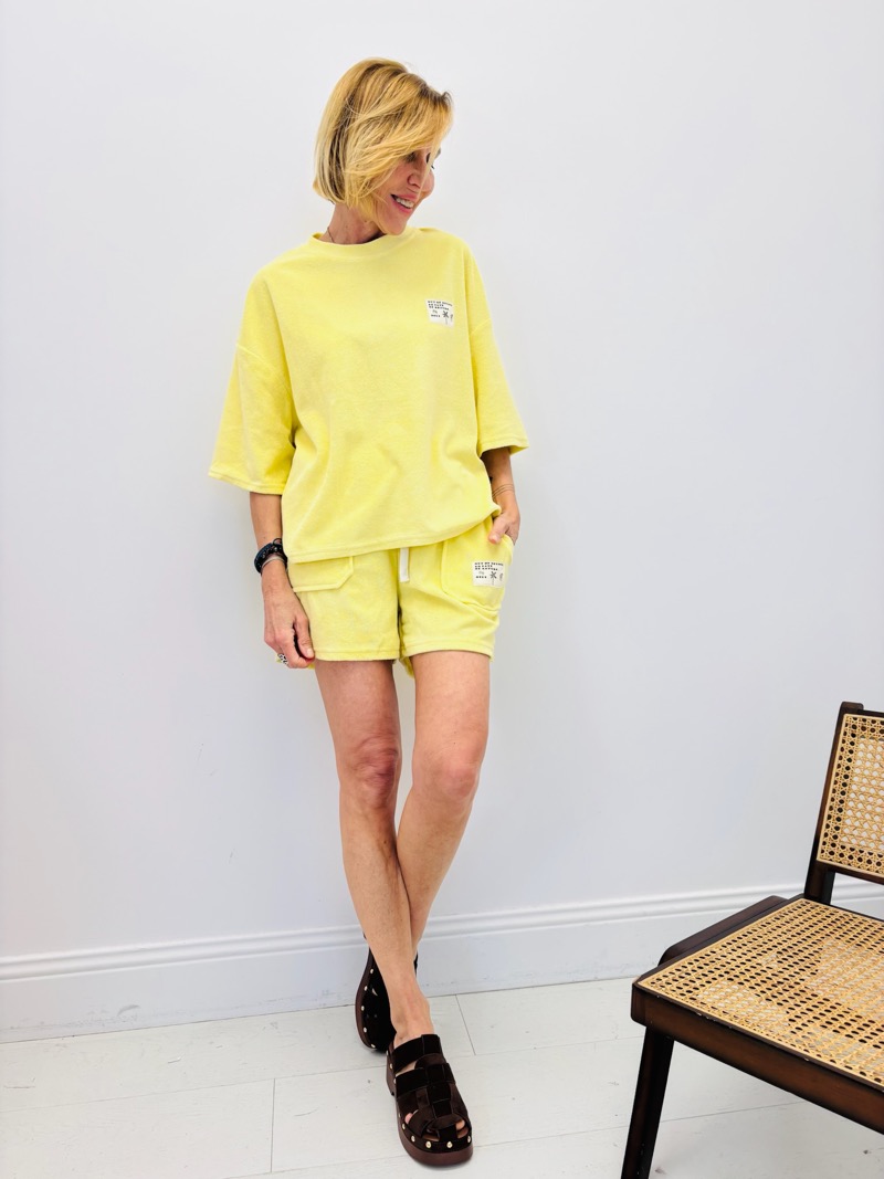 Ce t-shirt en matière éponge apporte une touche moderne et ultra confortable à une silhouette casual. Décliné en plusieurs coloris vibrants comme le violet, le rose et le jaune, il dynamise facilement une sélection estivale en boutique.
