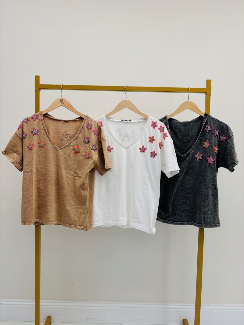 Découvrez notre t-shirt étoilé en coton de haute qualité, idéal pour un look casual et chic. Parfait pour ajouter une touche d’originalité à votre garde-robe.