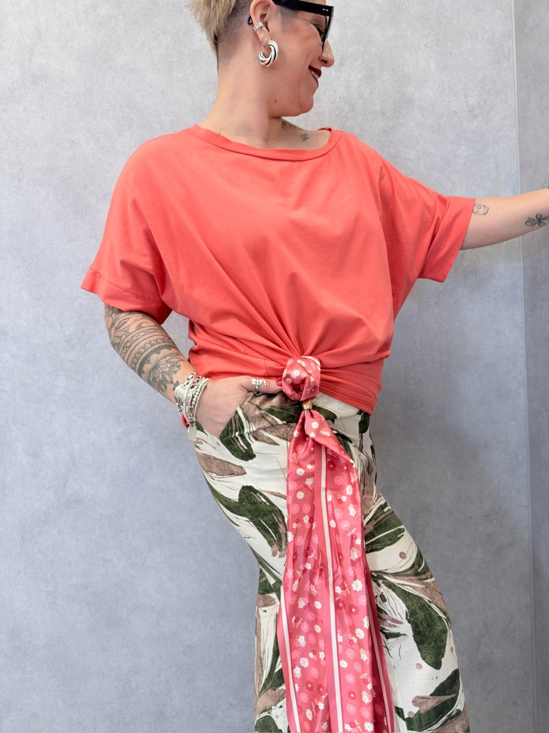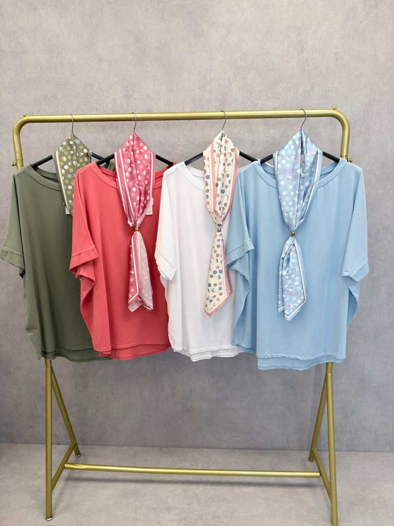À associer avec un jean, un pantalon fluide ou une jupe pour un look du quotidien élégant. Portez-le avec l’écharpe nouée pour un style travaillé et tendance, ou sans pour une allure simple et décontractée. Idéal avec des baskets, sandales ou mocassins selon l’occasion.
