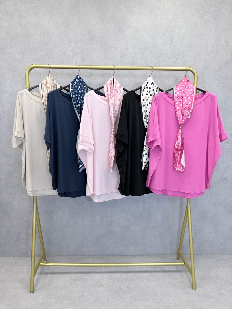 Disponible dans plusieurs coloris intemporels et faciles à associer (beige, bleu marine, rose poudré, noir, fuchsia…), ce t-shirt s’adapte à toutes les garde-robes et à toutes les saisons.