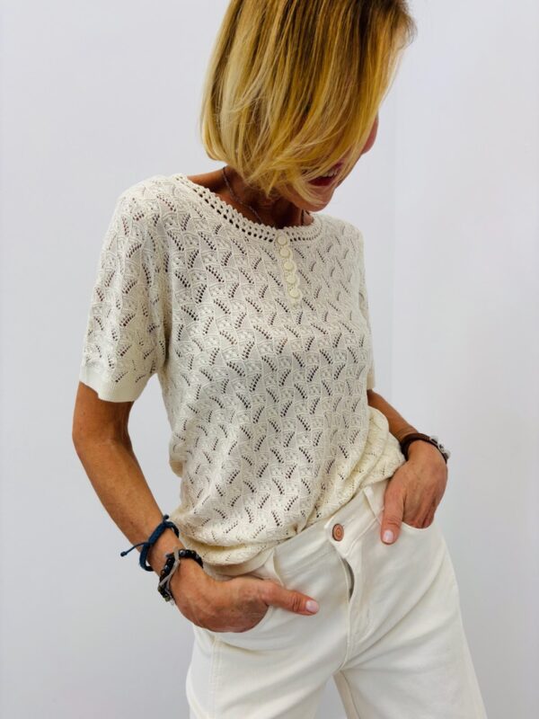 Avec des sandales, des baskets ou même un pantalon large, il crée un look estival lumineux et tendance. En version plus habillée, il se marie parfaitement avec un pantalon noir fluide et des accessoires dorés pour une silhouette élégante et moderne.