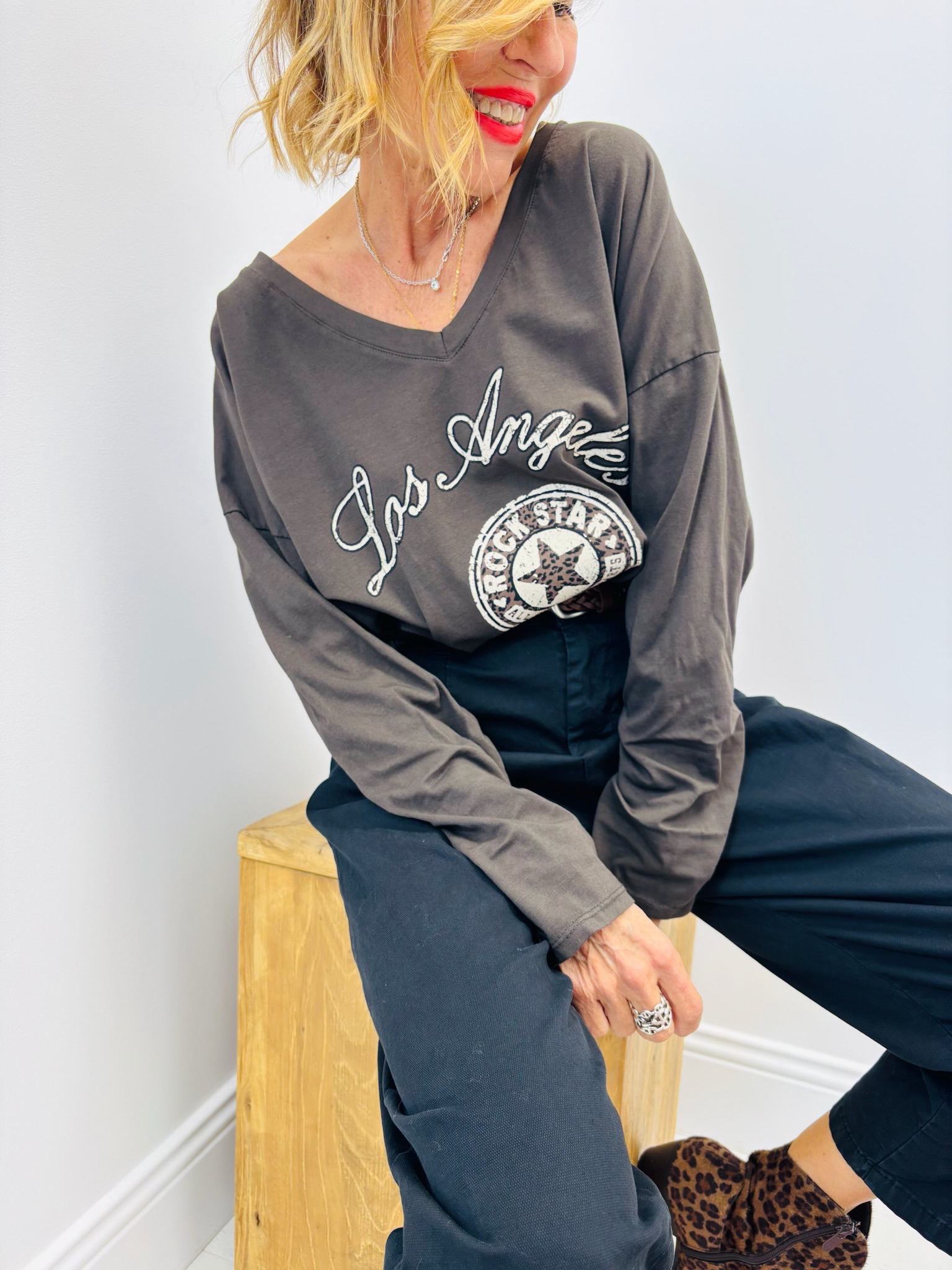 Imprimé brodé “Los Angeles – California Rockstar” sur le devant