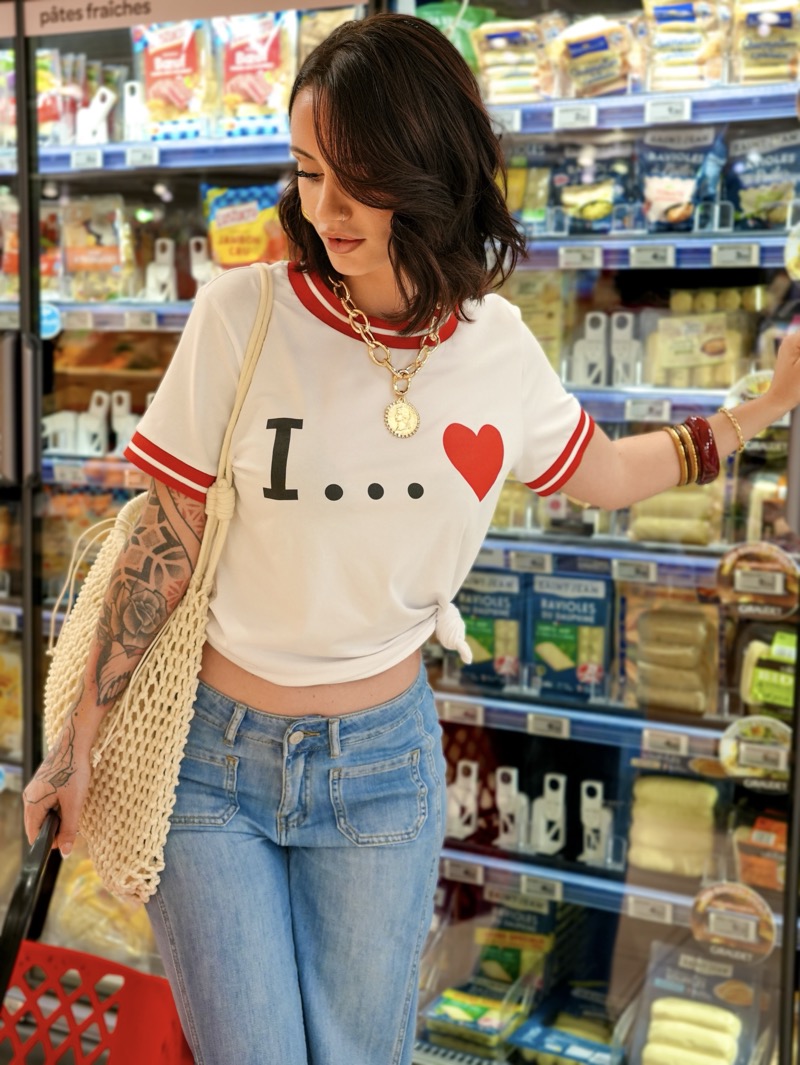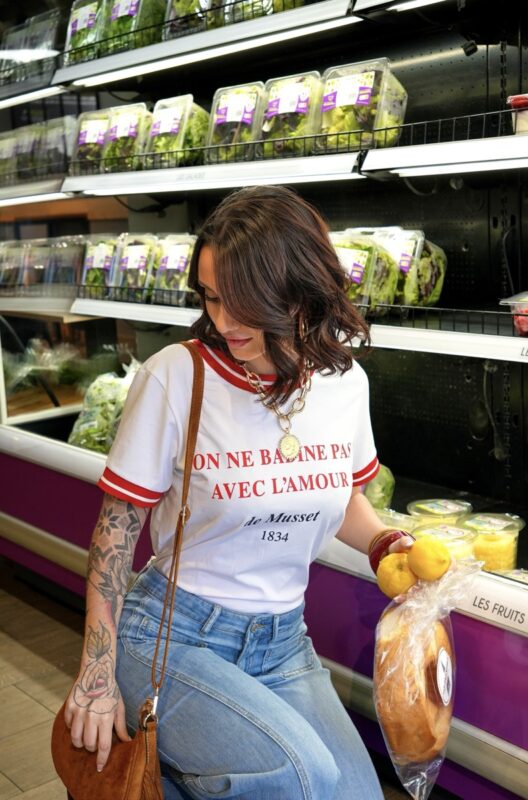 À associer avec un jean ou un pantalon taille haute pour un look épuré et tendance. Parfait également avec un short en denim pour une silhouette estivale décontractée. Peut se porter sous une veste ou un blazer pour apporter une touche graphique subtile à une tenue plus structurée.