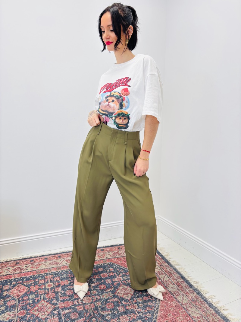Porté avec un pantalon à pince, un jean ou un short, ce t-shirt crée une silhouette moderne et décontractée. Il se combine parfaitement avec des baskets pour un look casual ou avec des pièces plus structurées pour un style urbain chic. Grâce à son imprimé fort, il suffit à lui seul à donner du caractère à la tenue, tout en restant facile à associer au quotidien.