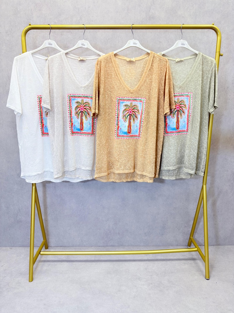 T-shirt Palmiers Col V