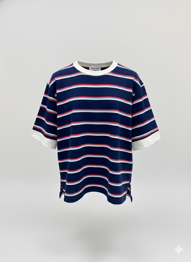 Ce t-shirt oversize rayé revisite l’iconique esprit marin dans une version moderne et confortable, idéale pour une clientèle à la recherche de pièces faciles à vendre et à associer. Son jeu de rayures contrastées apporte une touche graphique forte tout en restant intemporelle.