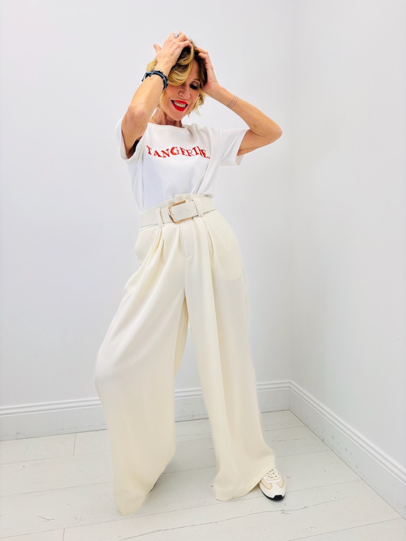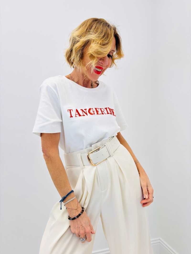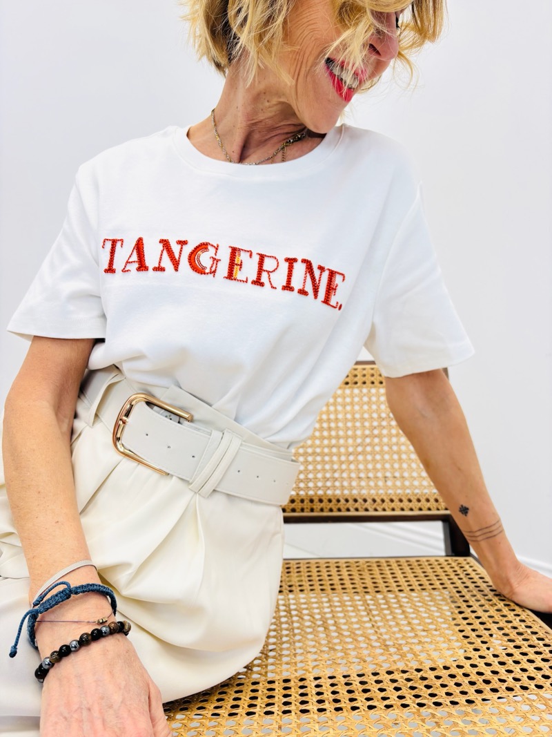 Découvrez ce t-shirt blanc au design épuré, orné de détails captivants en sequins pour une touche de modernité.