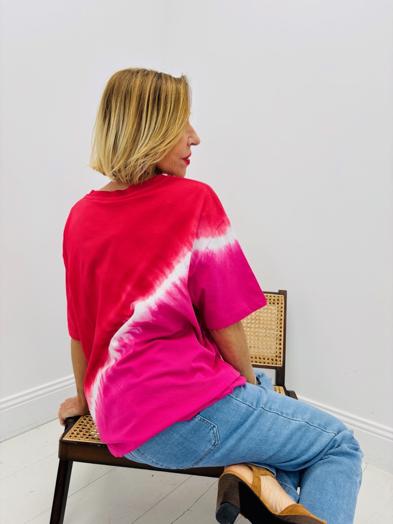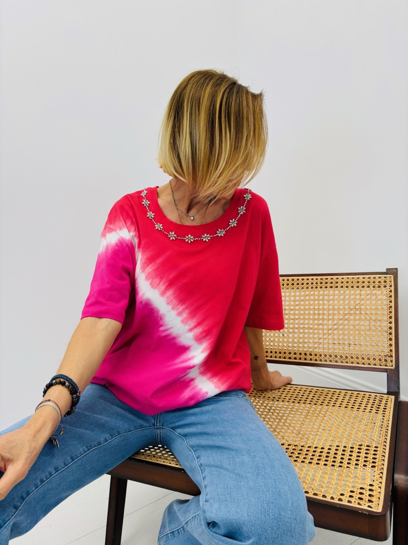Découvrez ce superbe t-shirt tie&dye, parfait pour ajouter une touche d’élégance et de modernité à votre garde-robe.