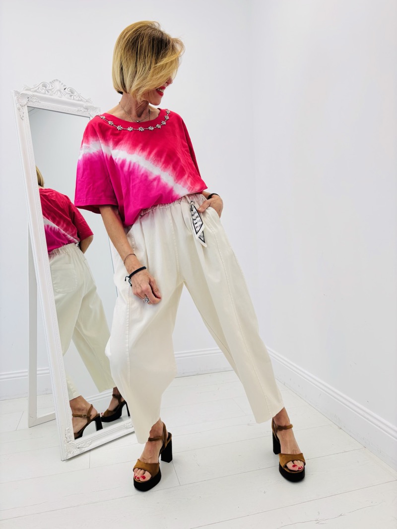 Découvrez ce t-shirt tie&dye unique, parfait pour ajouter une touche de couleur à votre garde-robe. Conçu pour les amateurs de mode qui aiment se démarquer avec style.