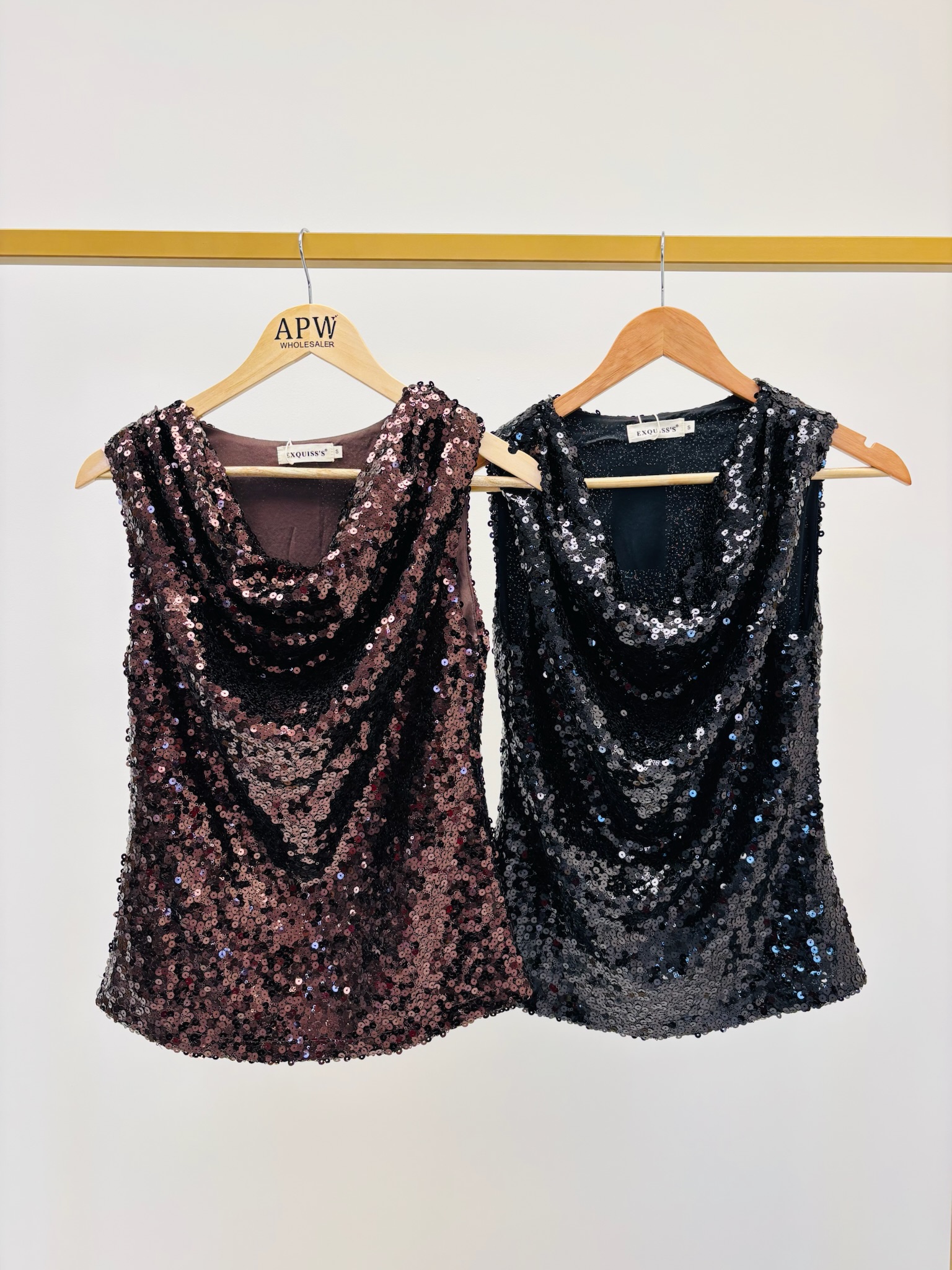 Top à Sequins – Encolure Drapée & Doublure Confort