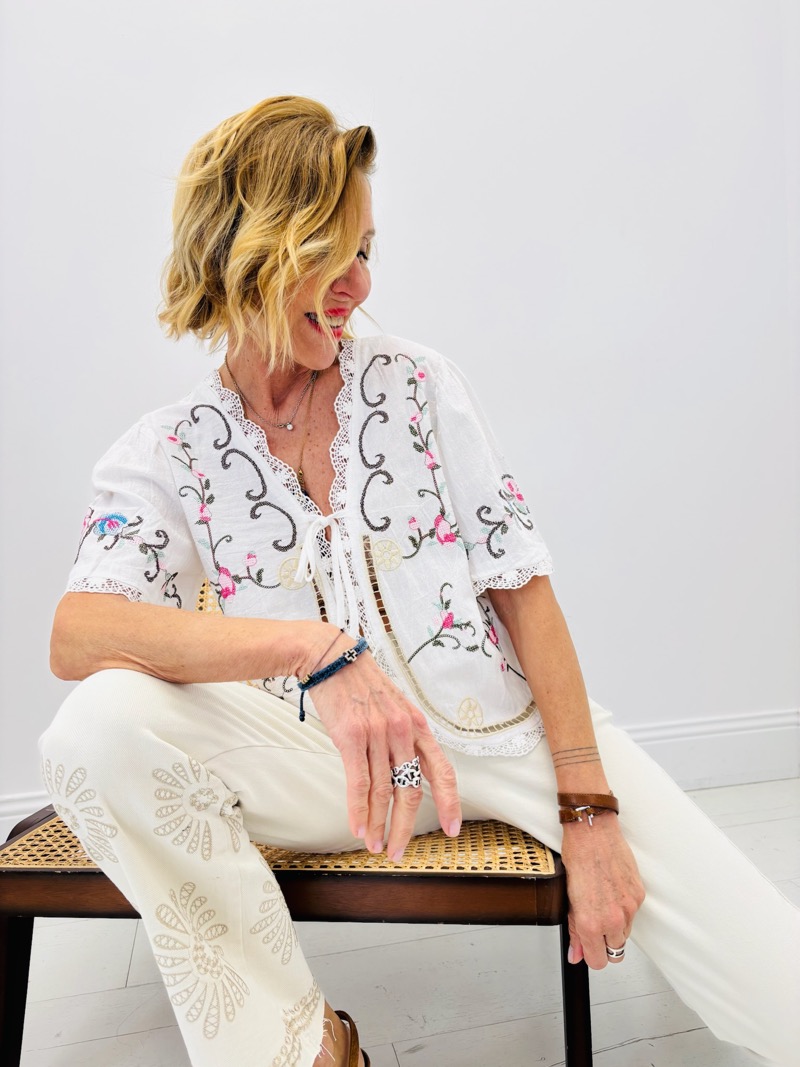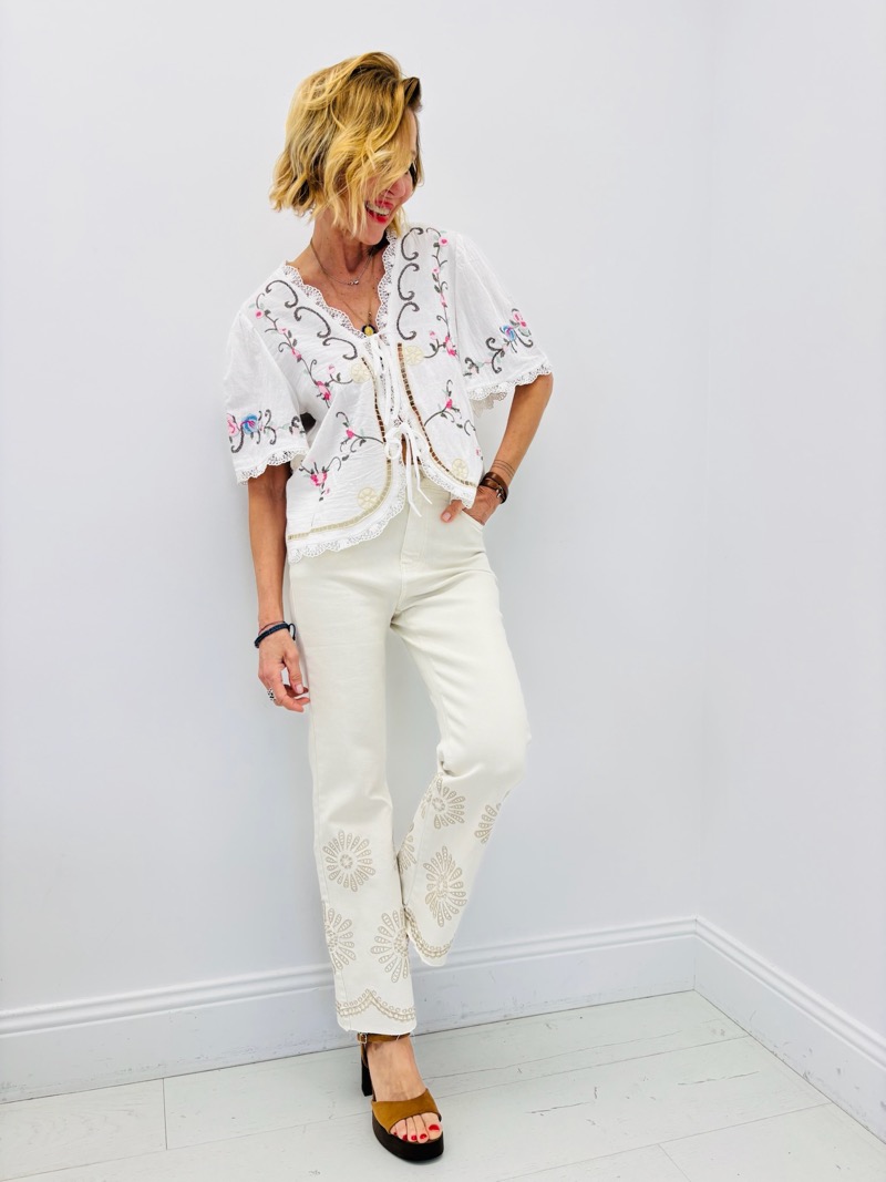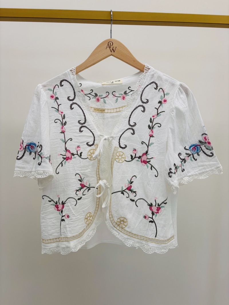 Découvrez notre top brodé qui allie élégance et délicatesse. Orné de motifs floraux, il apportera une touche de fraîcheur et d’originalité à votre garde-robe.