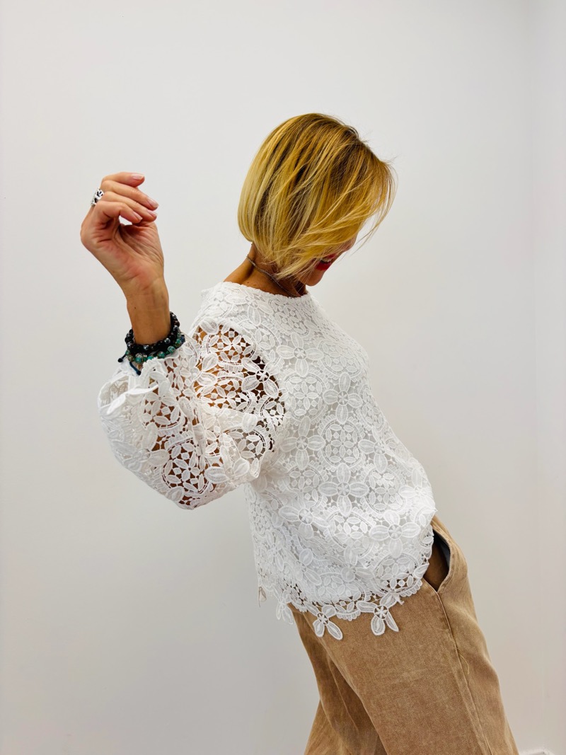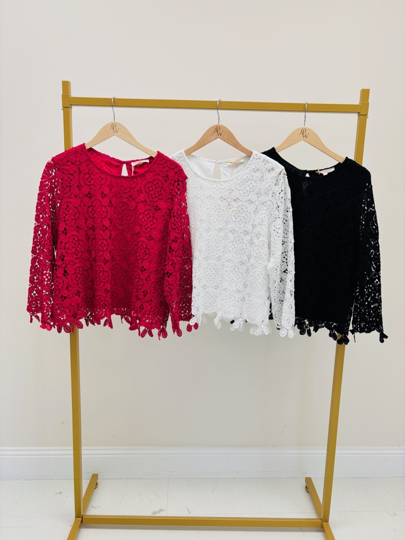 Ce top en dentelle doublé est une pièce élégante et intemporelle, idéale pour sublimer la silhouette avec délicatesse. Son travail de dentelle florale ajourée apporte relief et sophistication, tout en conservant un rendu léger et féminin.