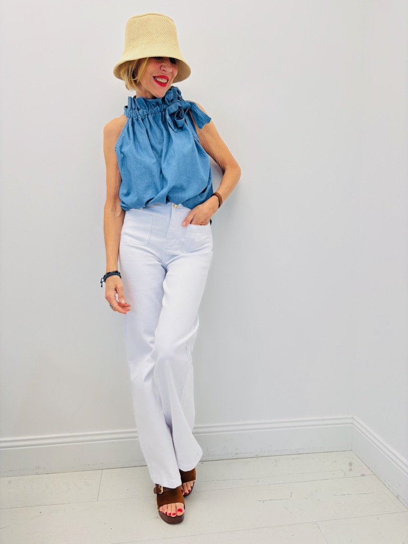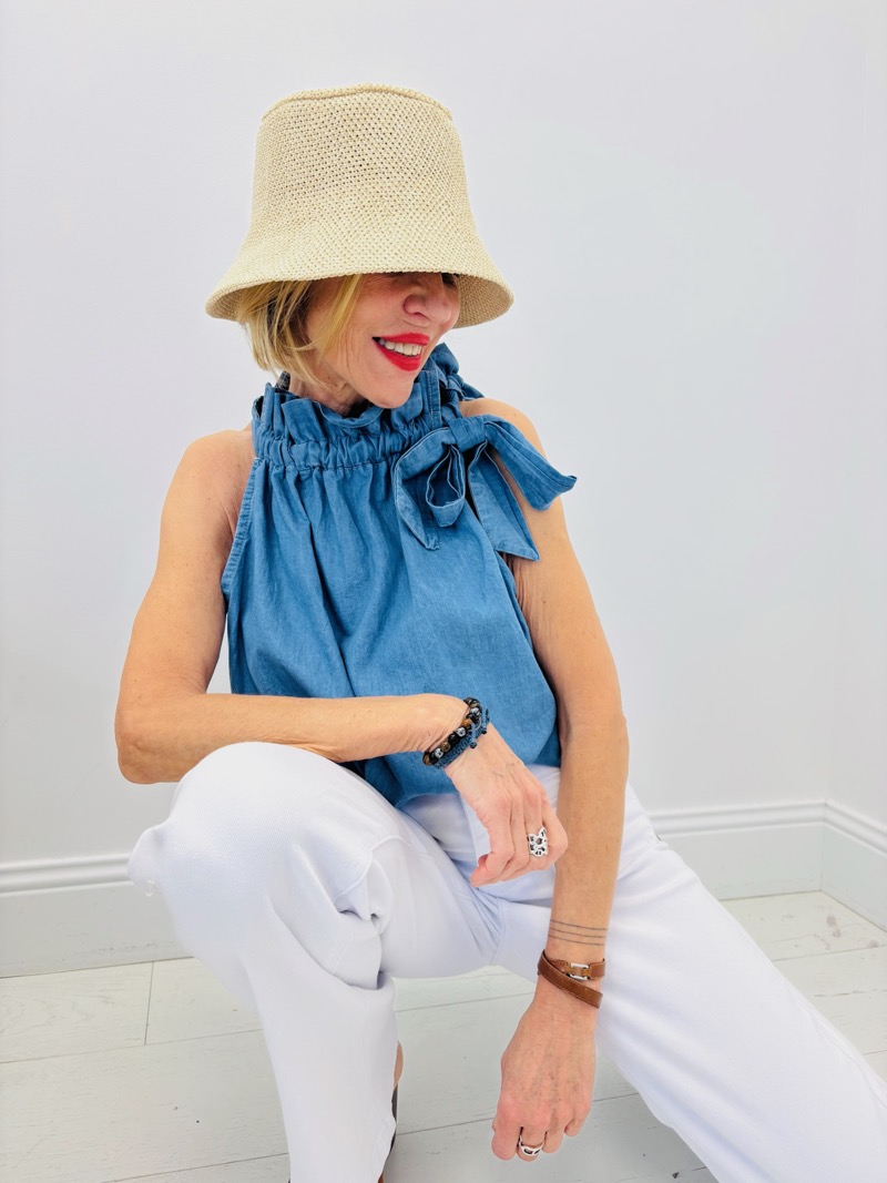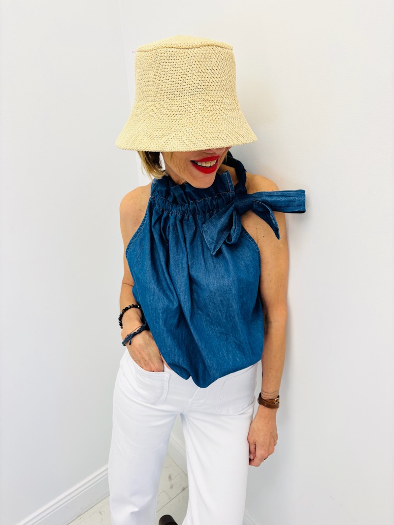 Découvrez ce fabuleux top en toile de jean, une pièce incontournable pour tout dressing moderne. La matière en coton offre une légèreté et une confortabilité exceptionnelle, idéale pour toutes vos sorties décontractées.