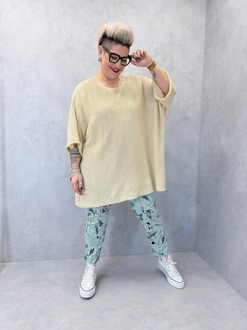 Le col arrondi, discret et intemporel, met en valeur le décolleté sans l’accentuer excessivement, rendant ce modèle facile à porter aussi bien en journée qu’en soirée. Sa longueur idéale permet de le porter aussi bien rentré dans un pantalon ou une jupe que laissé fluide pour un rendu plus décontracté. C’est un top polyvalent, conçu pour répondre aux attentes d’une clientèle grande taille en quête de pièces flatteuses et faciles à associer.